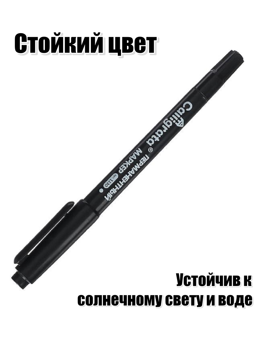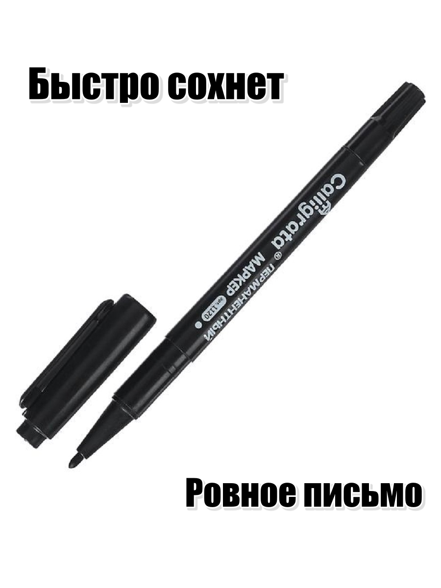 Маркеры перманентные, 10 штук, двусторонние, толщина - 2 мм и 0.7 мм, черные