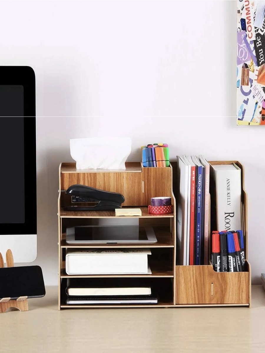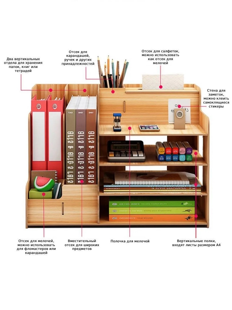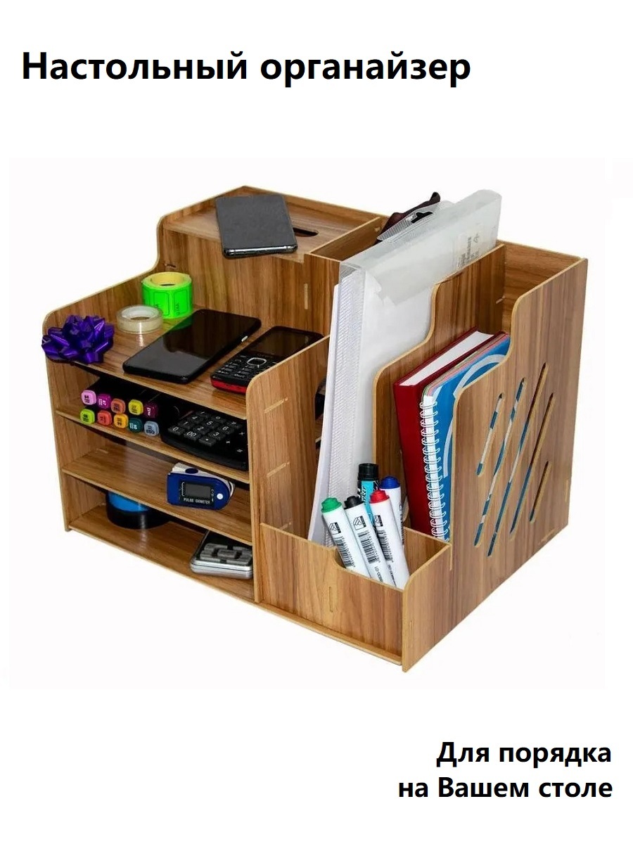 Деревянный настольный органайзер для канцелярских принадлежностей, Большой