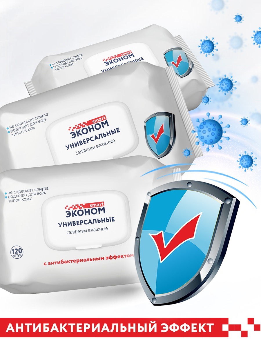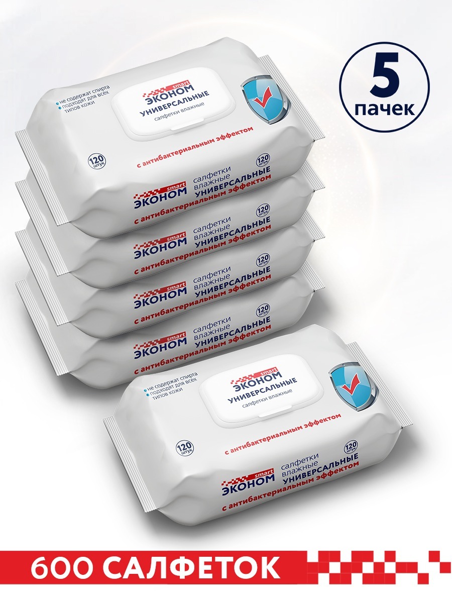 Влажные салфетки универсальные, антибактериальные 600шт. Набор влажных салфеток 5 пачек по 120шт.