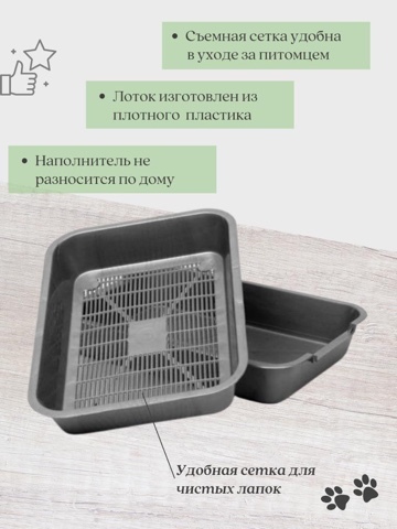 Лоток с сеткой, бортиком и совком, большой / туалет для животных, 43 х 33 х 12,5 см.