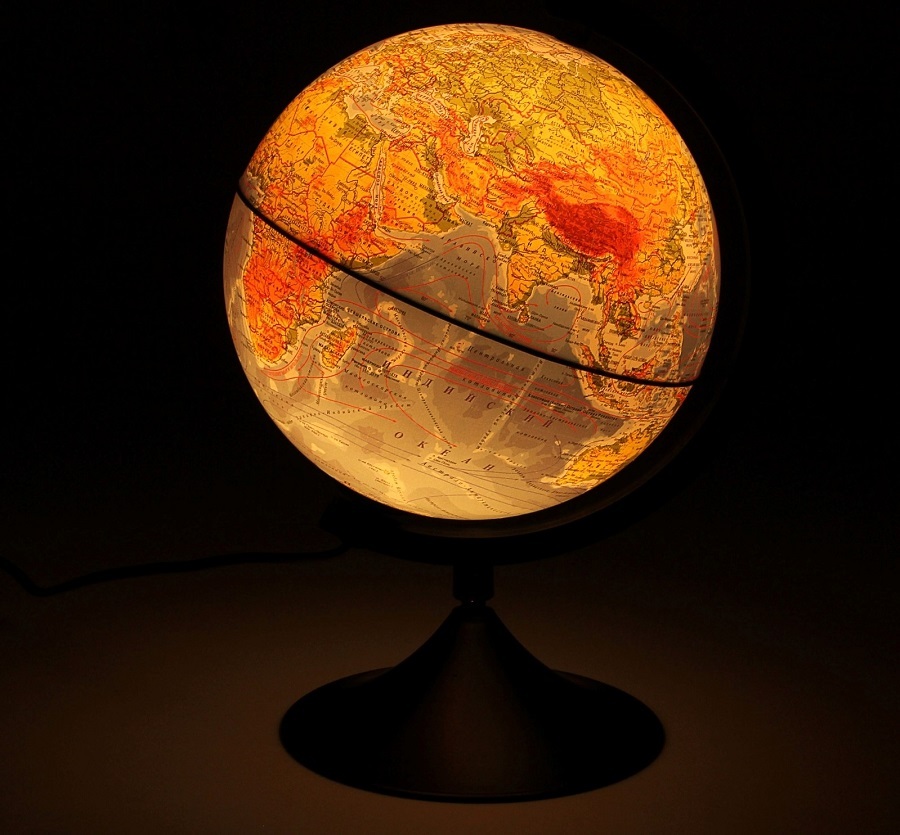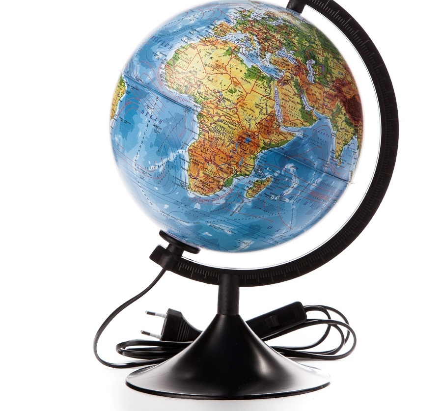 Глобус светящий физический. Глобус с подсветкой настольный. Диаметр: 210мм