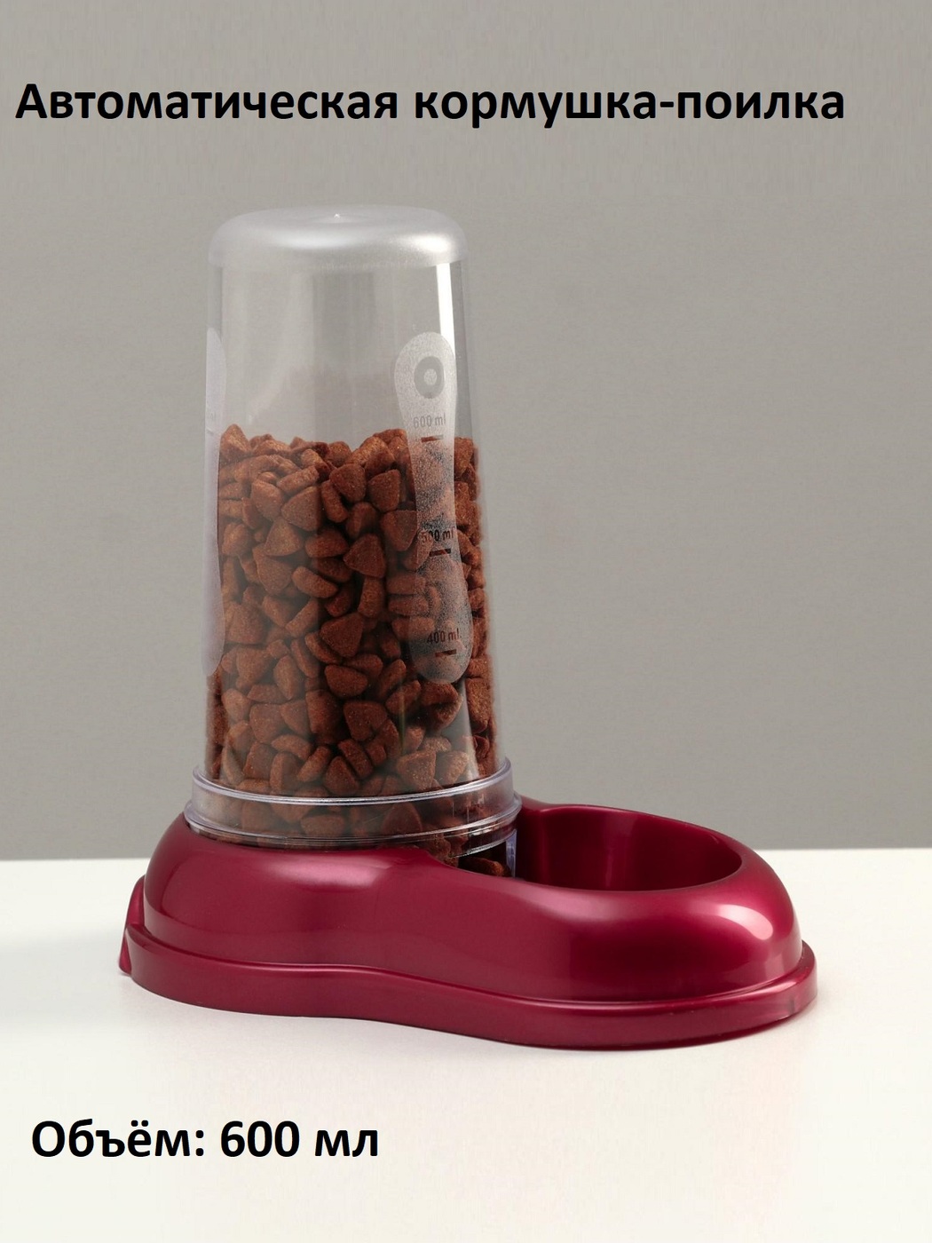 Кормушка, поилка для домашних животных, 0.6 л, рубиновая