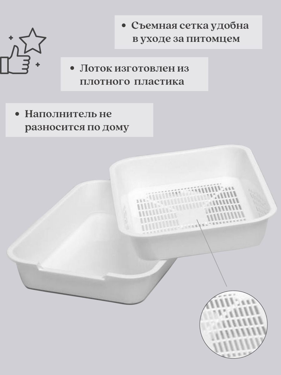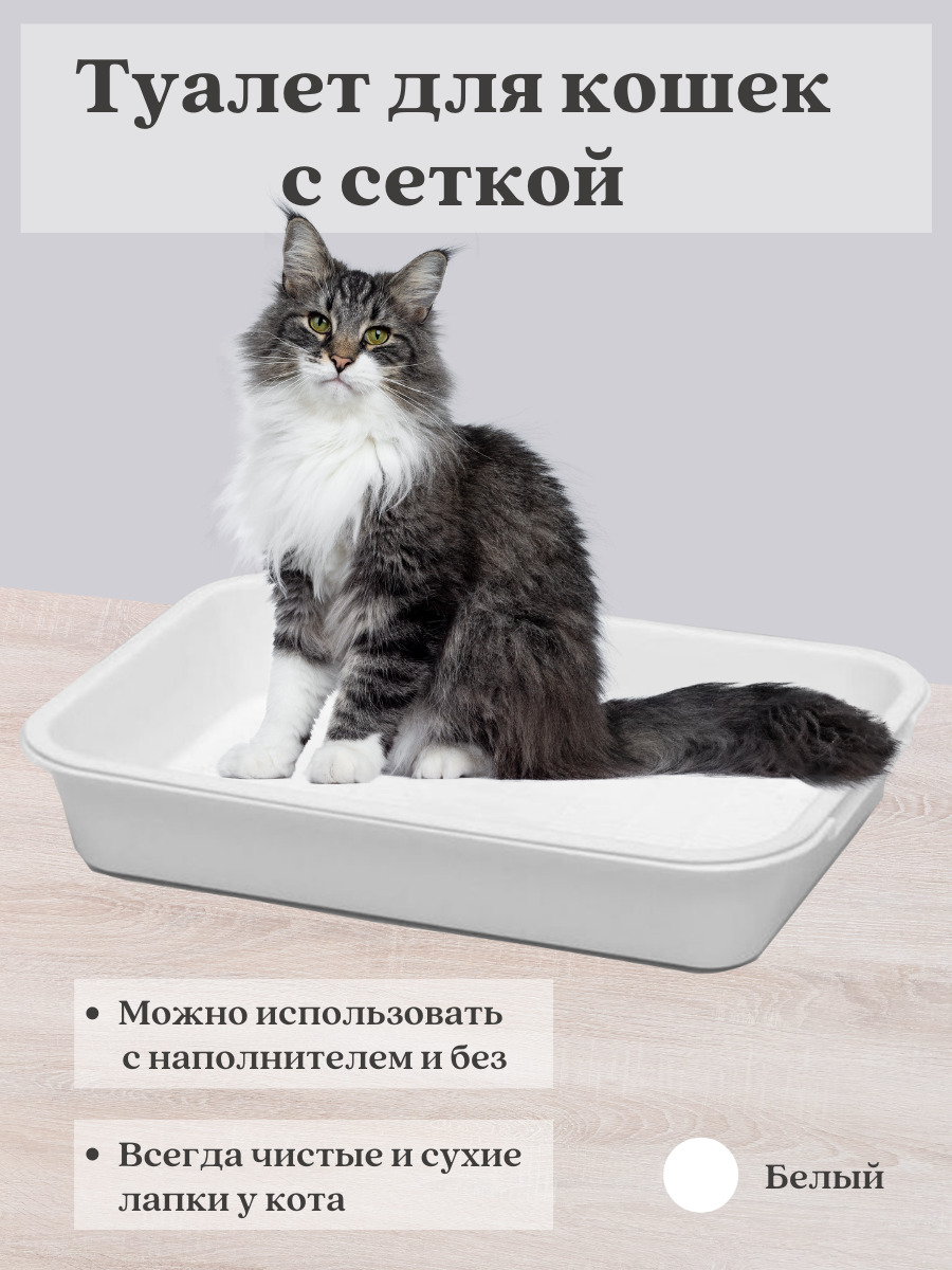 Туалет для кошек и собак лоток средний с сеткой. 36 х 26 х 6,5 см, белый
