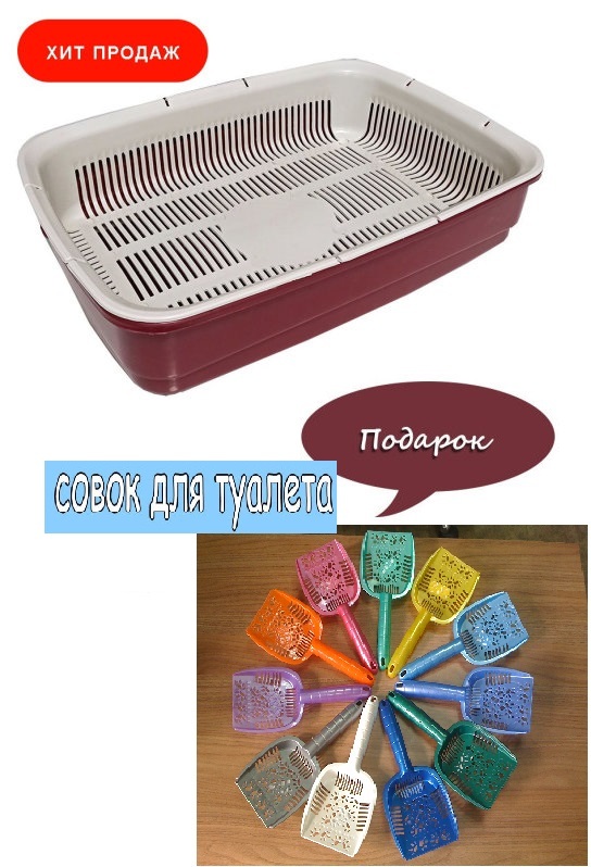 Лоток для кошек с решеткой и совком / туалет для животных, 42 х 31 х 10 см