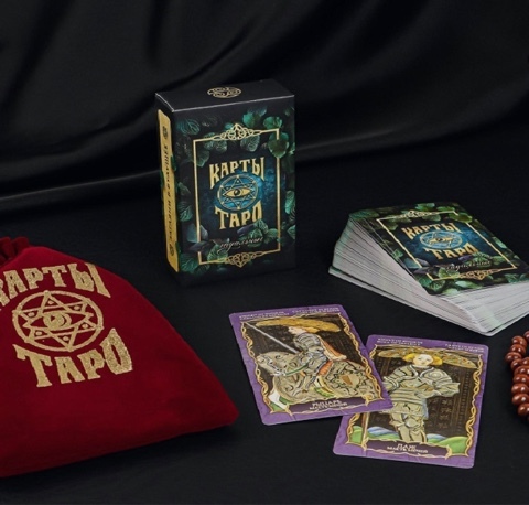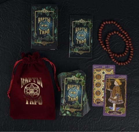 Карты Таро гадальные в бархатном мешке с инструкцией + четки