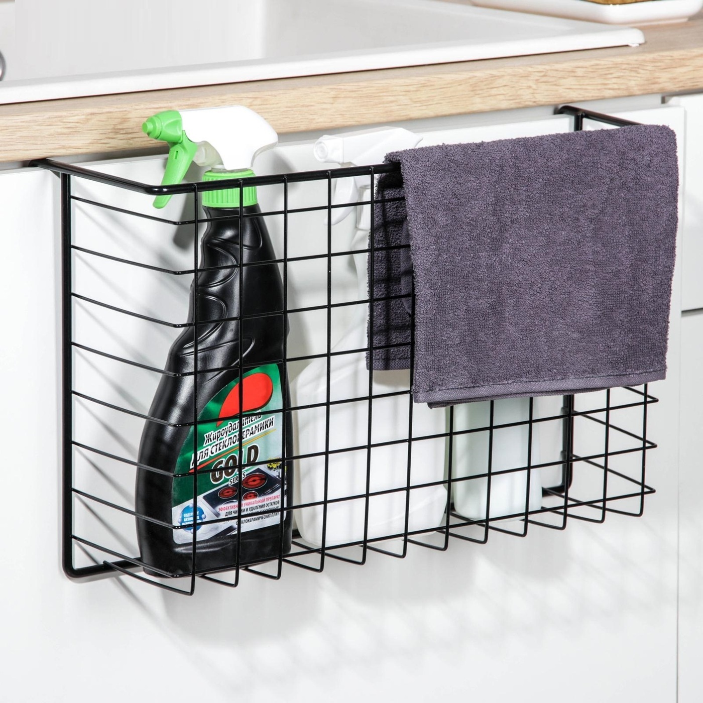 Корзина сетчатая подвесная 40 см * 26 см * 11 см, на полку шкафа, цвет черный