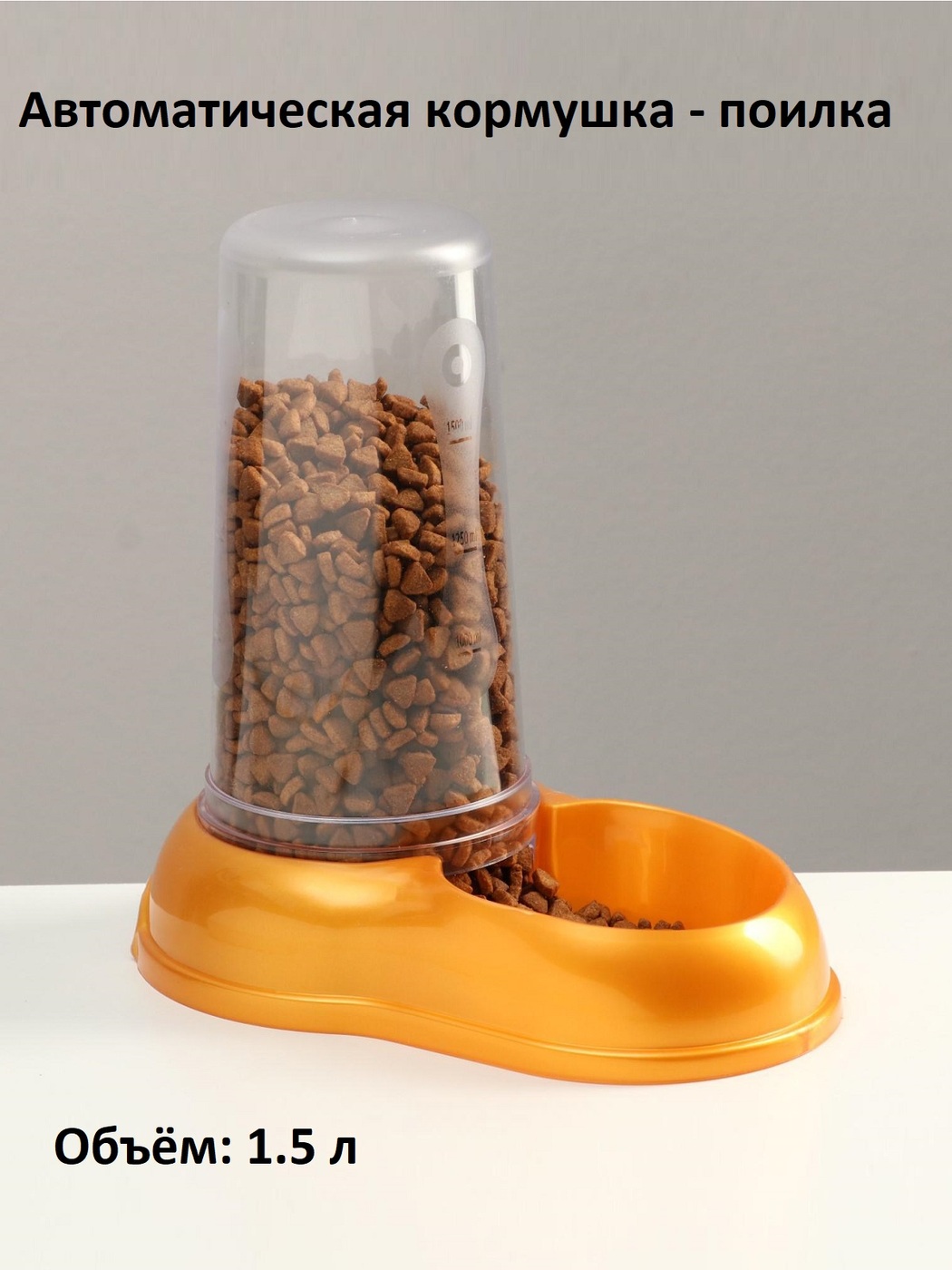 Кормушка, поилка для домашних животных, 1.5 л, золотая