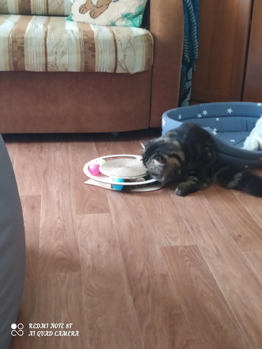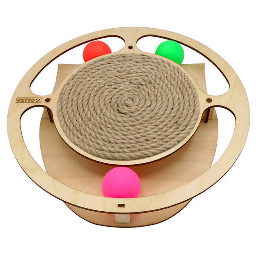 Игровой комплекс для кошек Круг с шариками с когтеточкой из каната.
