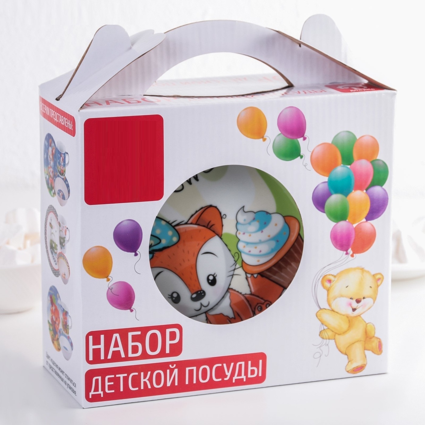 Посуда детская, Лисичка, 3 предмета: кружка + миска + тарелка