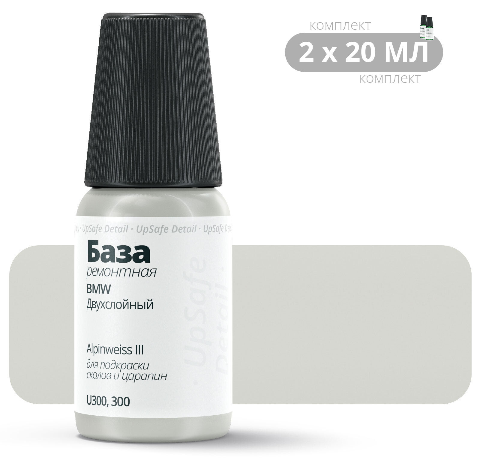 Подкраска BMW "Alpinweiss III", код цвета: U300, 300, штрих-корректор от сколов и царапин. Комплект 2х20мл. Белый двухслойный. Выпуск 1993 - 2021.