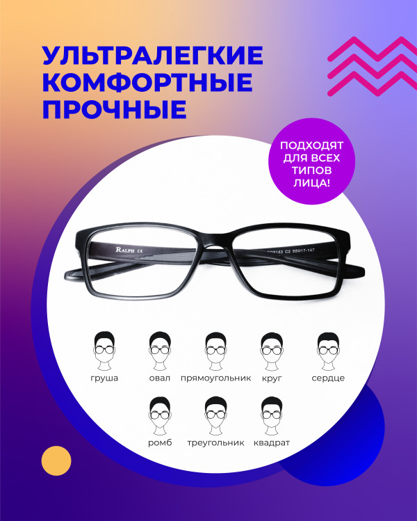Готовые очки для зрения с диоптриями корригирующие женские Ralph -1.0, черные