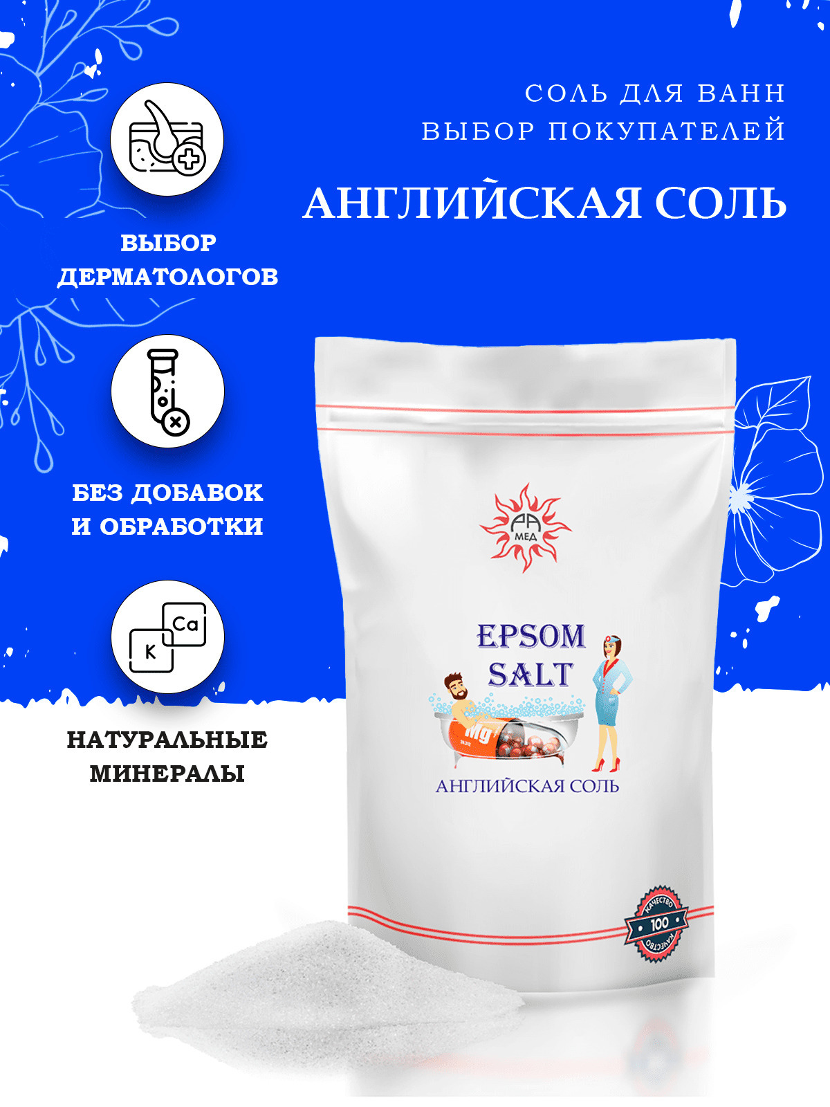 Английская соль, Epsom salt, 1 кг. (магниевая соль, соль Эпсома, сульфат магния)/Дар моря