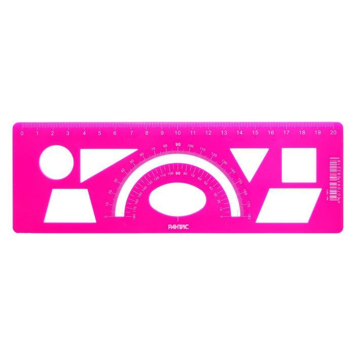 Линейка 20 см с трафаретом и рисунком 5 морских обитателей розовая