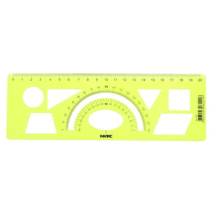 Линейка 20 см с трафаретом и рисунком 5 морских обитателей желтая