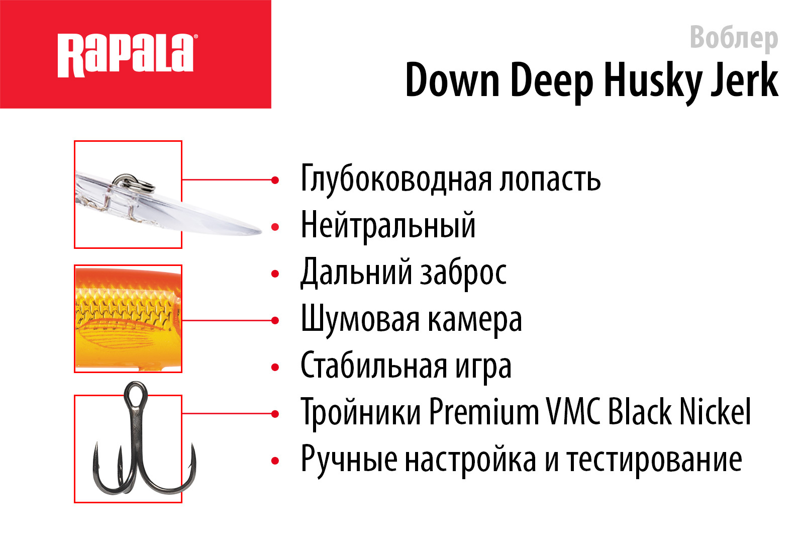 Воблер RAPALA Husky Jerk 12 /ELJ /суспендер/ 1,2-2,4м, 12см, 13гр