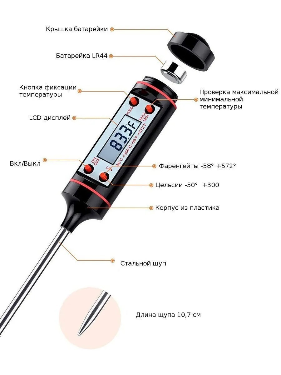 Кулинарный термометр Raygood, с щупом 15 см