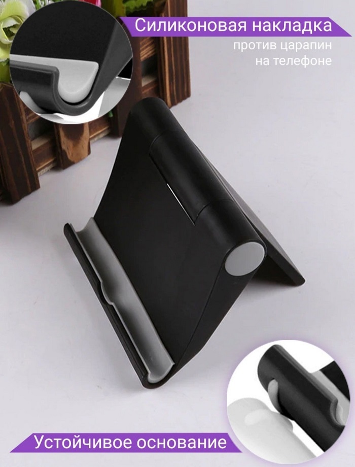 Подставка для мобильного телефона и планшета Raygood gt22. Размер: 10х8х2 см Черная..