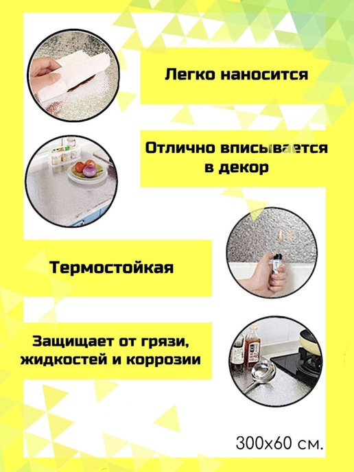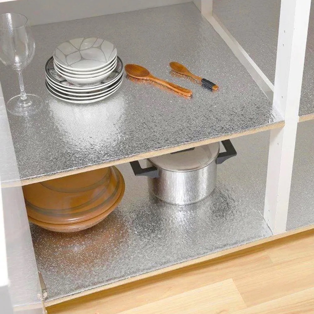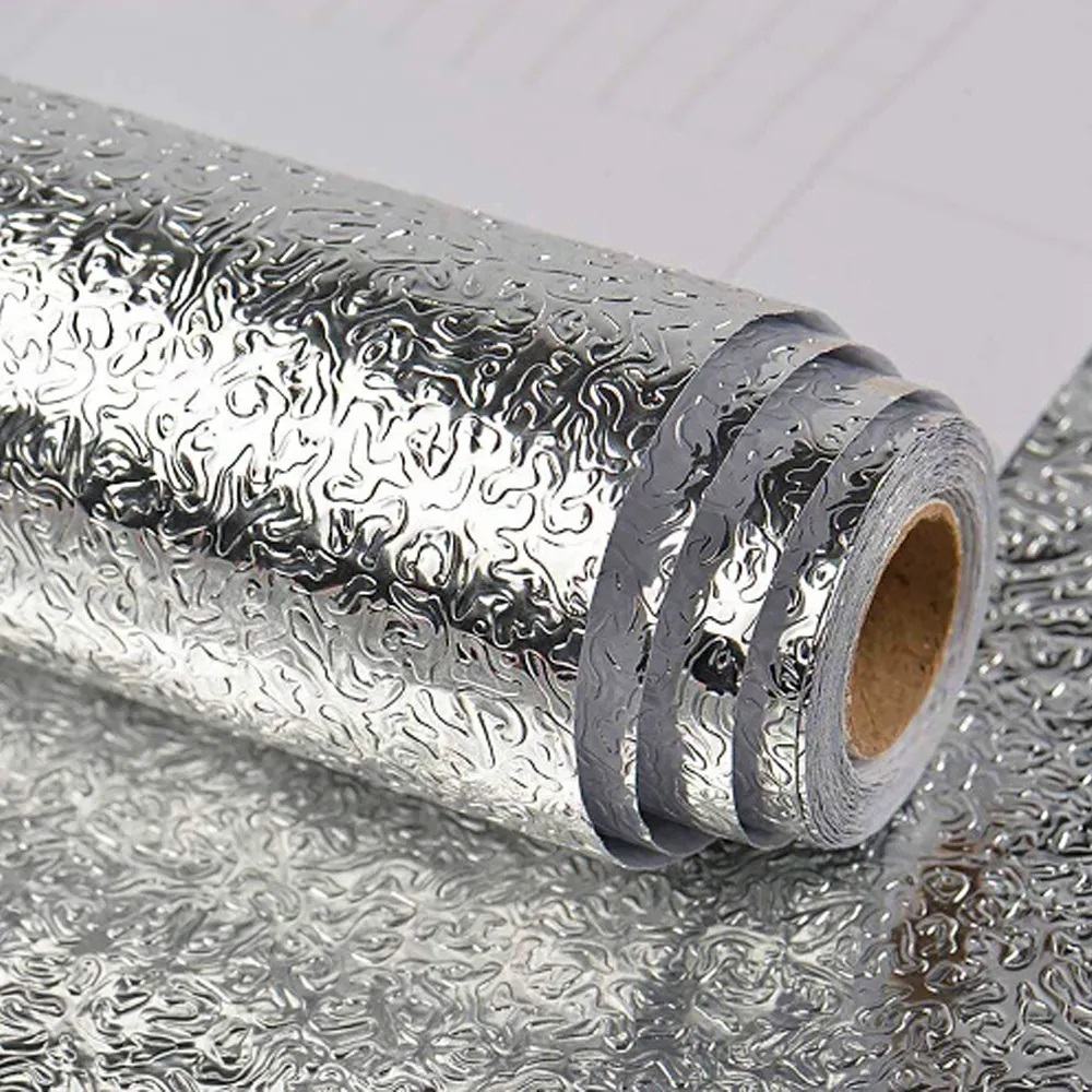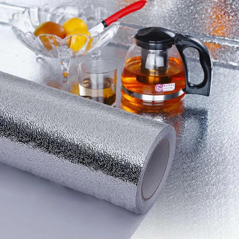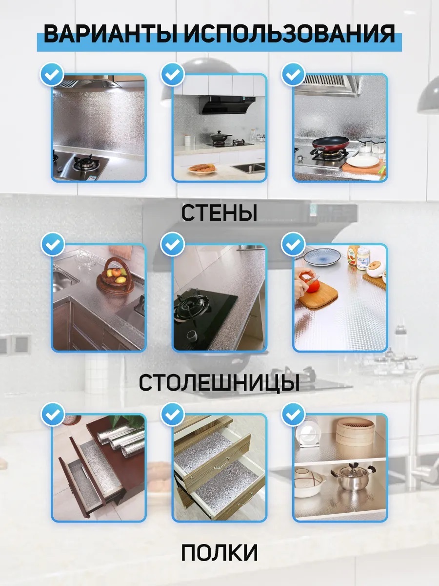 Защитная кухонная самоклеящаяся пленка-фольга 60х300 см. Серебряная жироотталкивающая наклейка от брызг и жира.