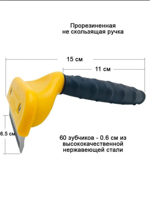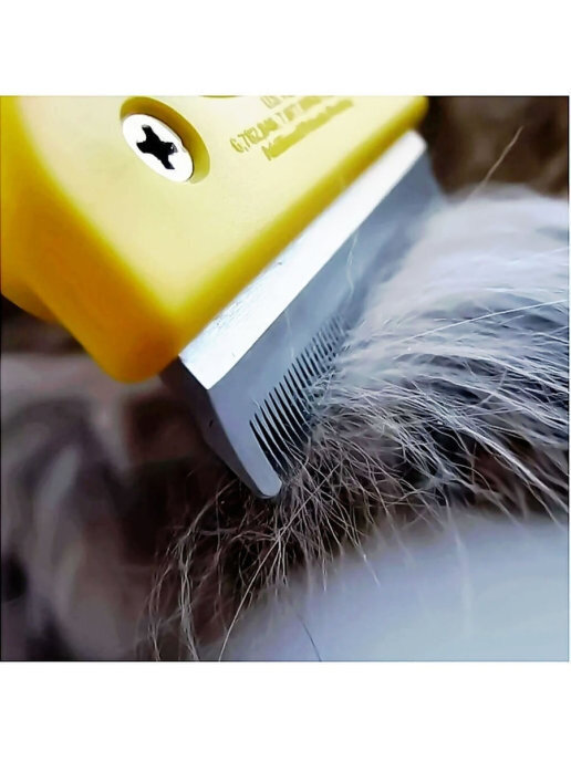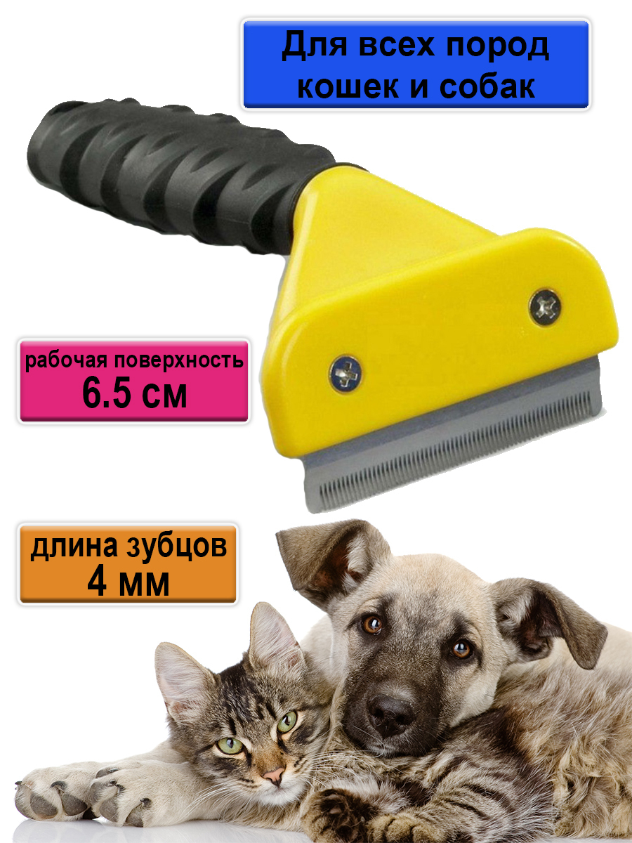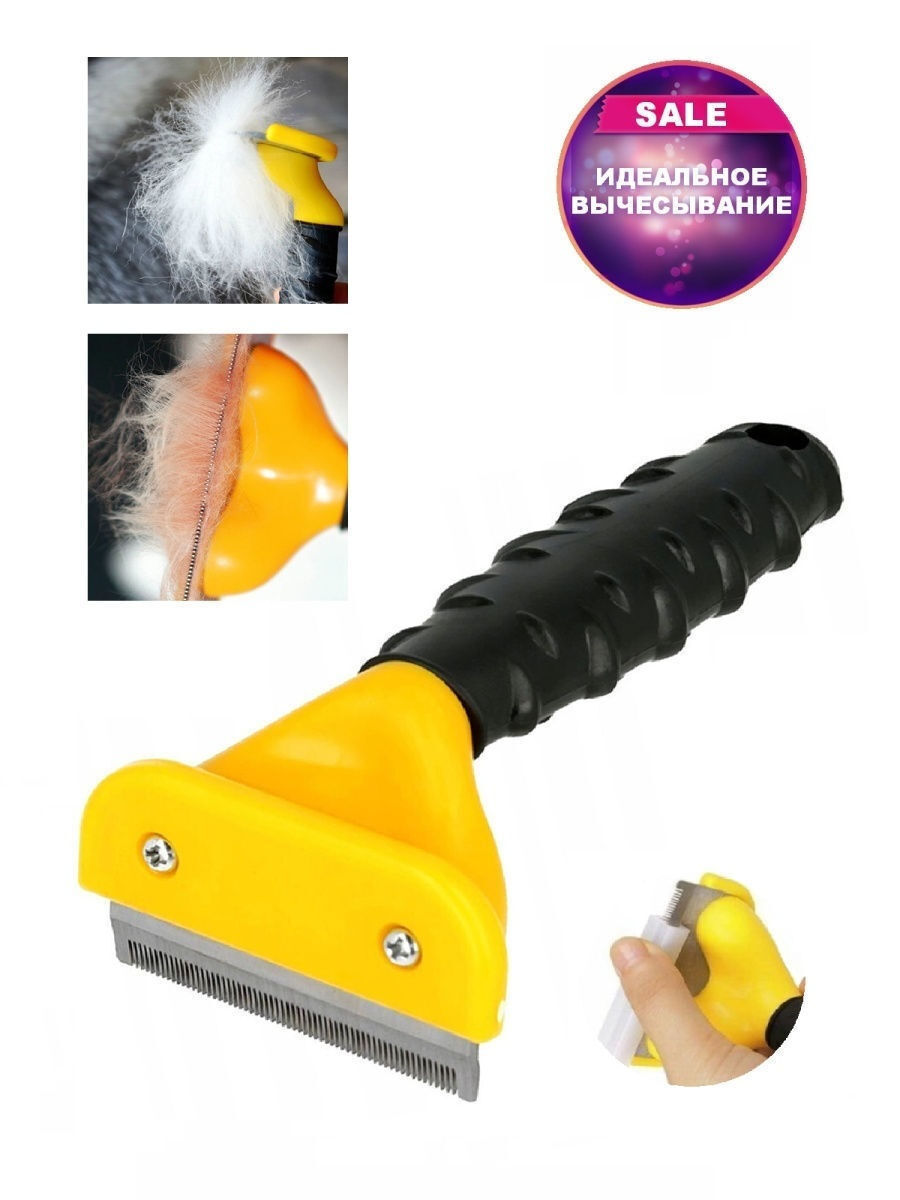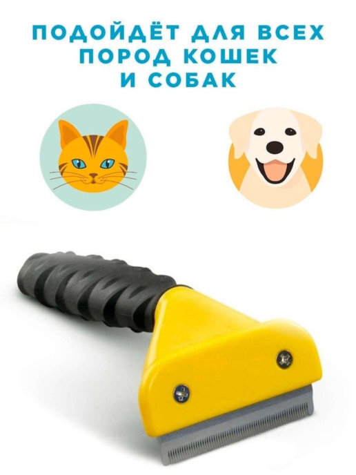 Расческа для кошек и собак / Расческа для вычесывания шерсти / Щетка для животных / Пуходерка / Груминг и уход / Желтый