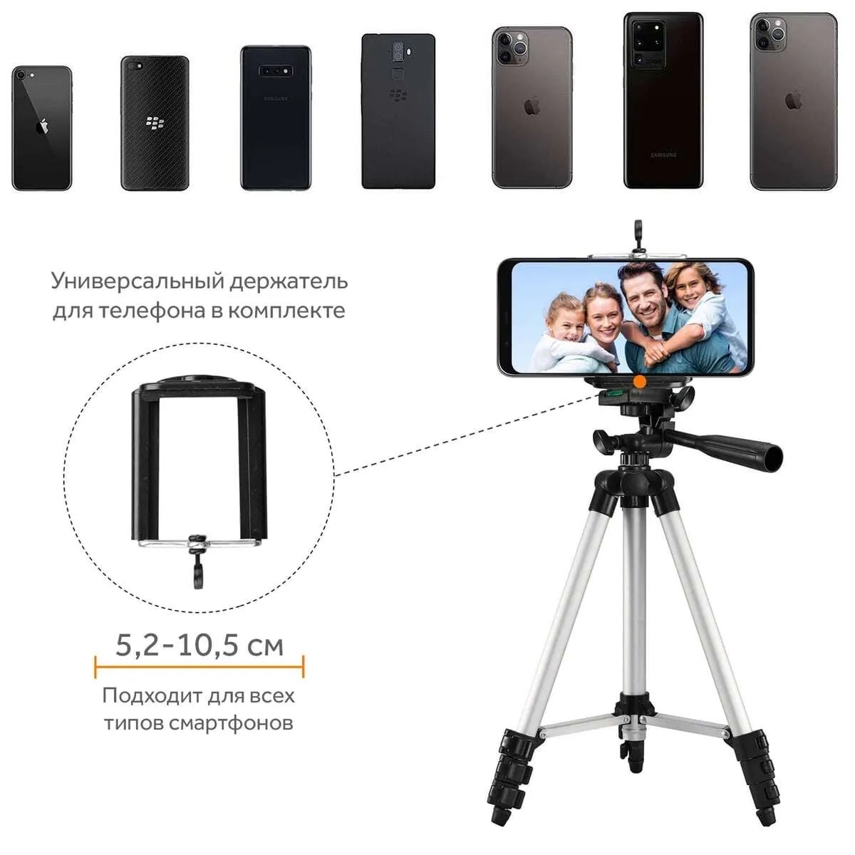 Штатив трипод для кольцевой лампы, смартфона, фотоаппарата, 2.1 м