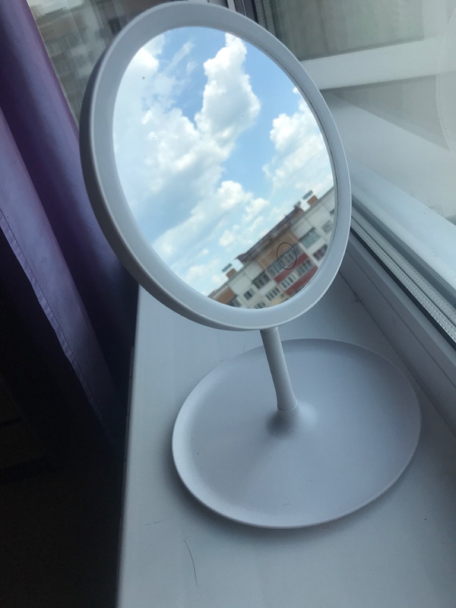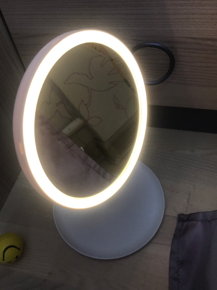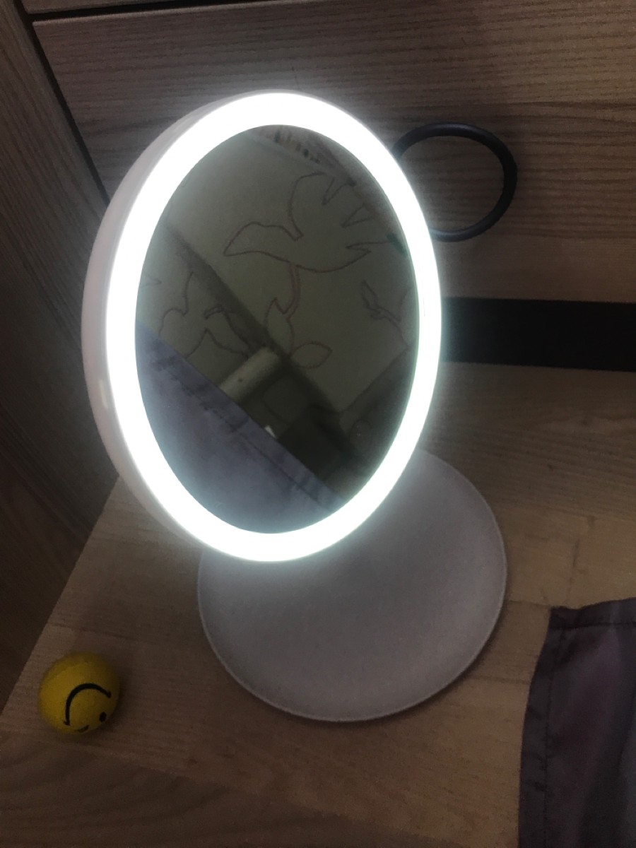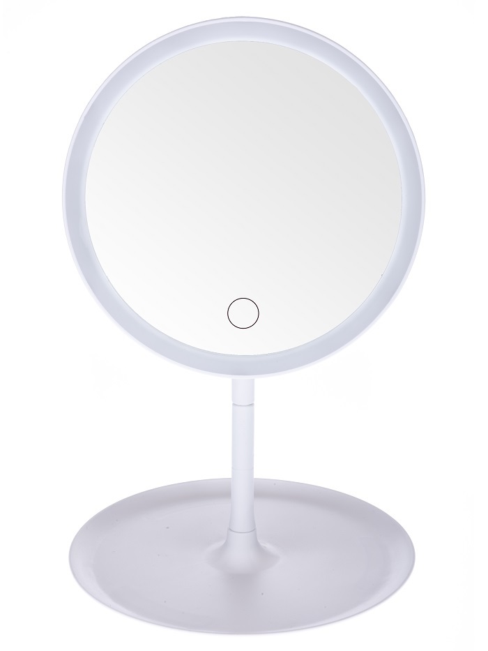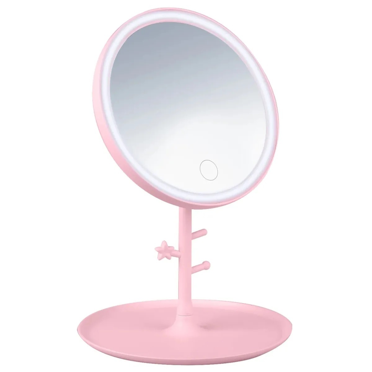 Зеркало косметическое с тремя режимами подсветки, регулировкой яркости и держателями для украшений.
