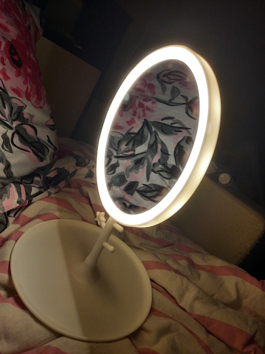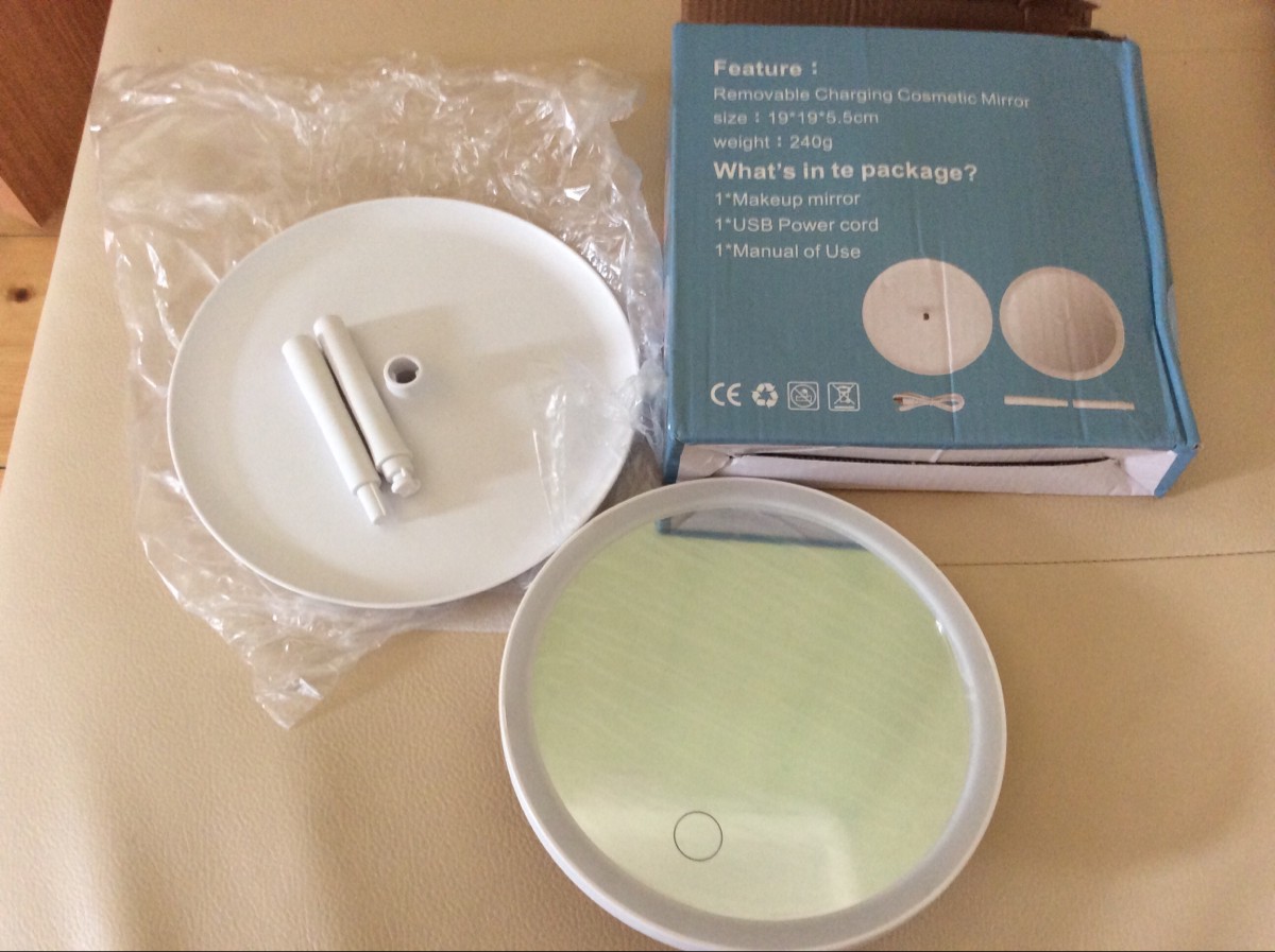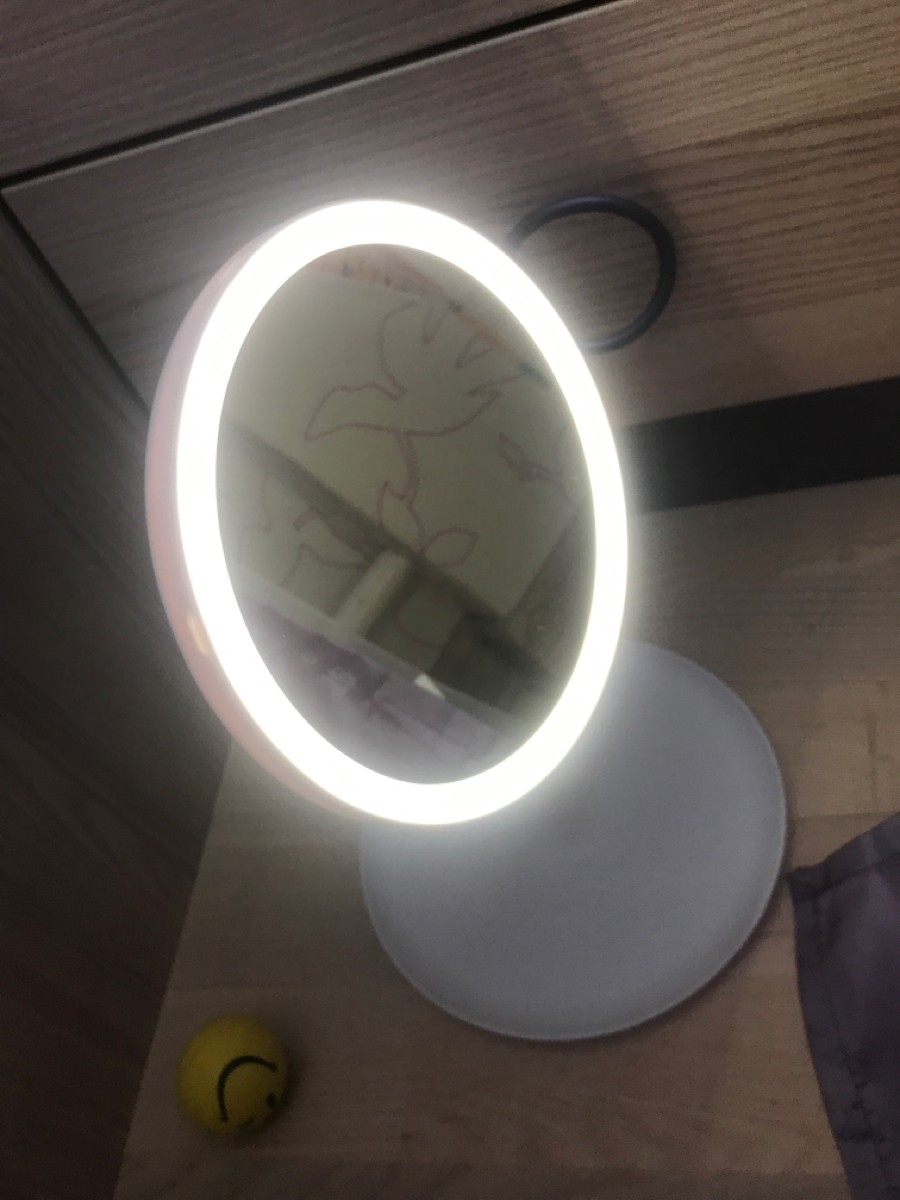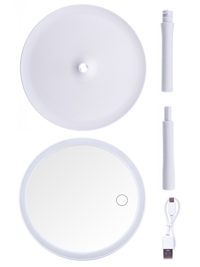 Зеркало косметическое с тремя режимами подсветки, регулировкой яркости и держателями для украшений.