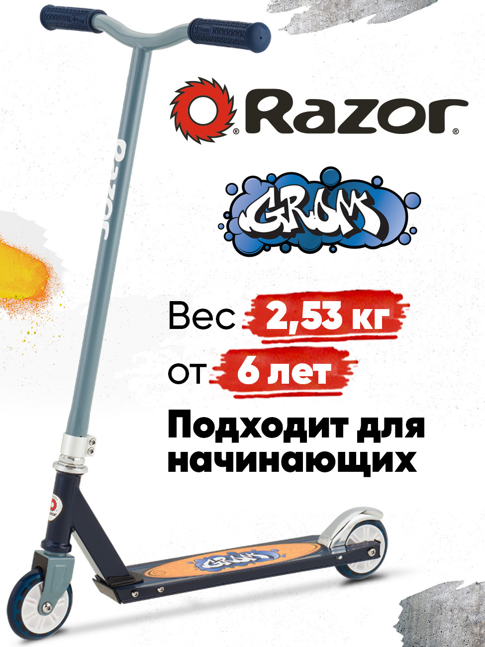 Самокат Трюковой Razor "Grom", цвет: черный, желтый, 98 мм