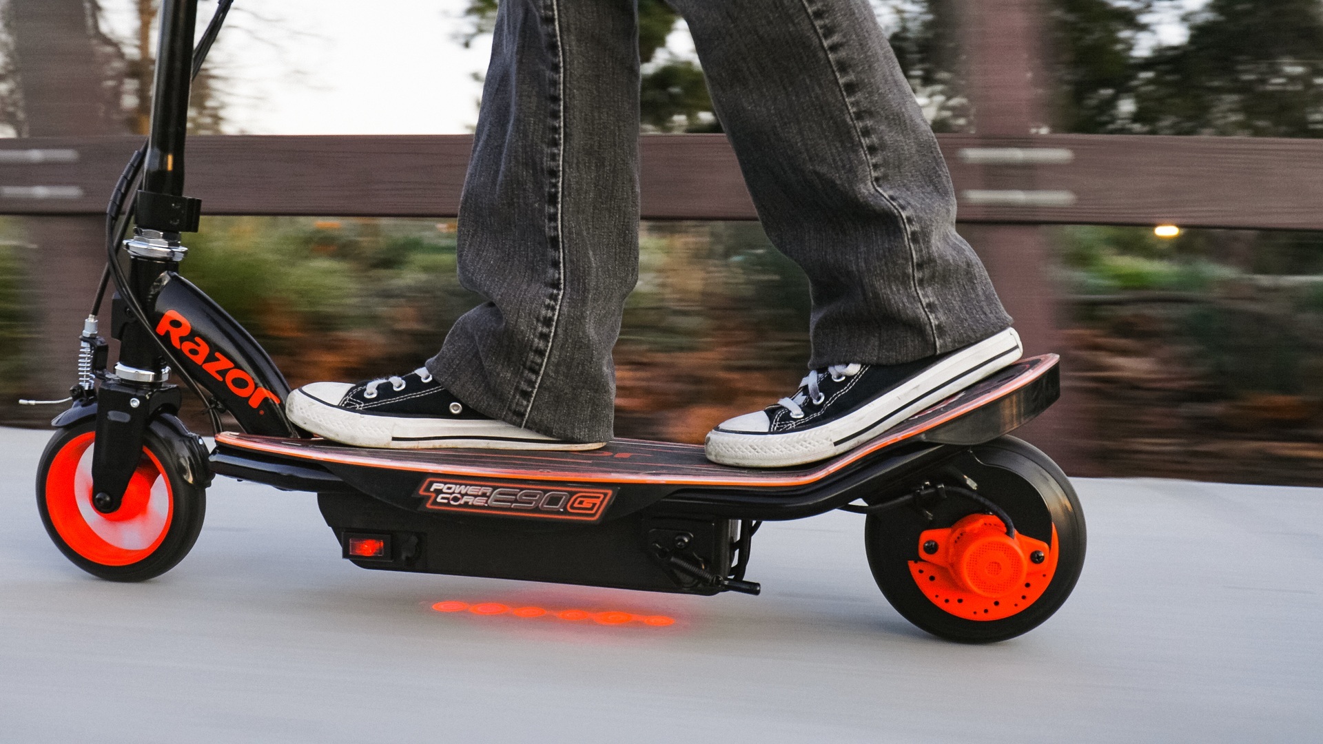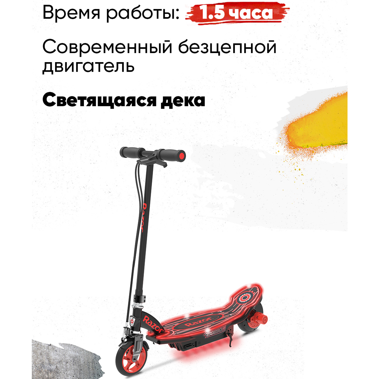 Электросамокат Razor Power Core E90 Glow, с подсветкой, для детей, красный