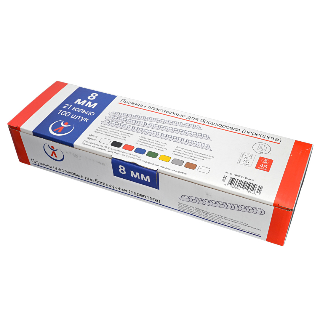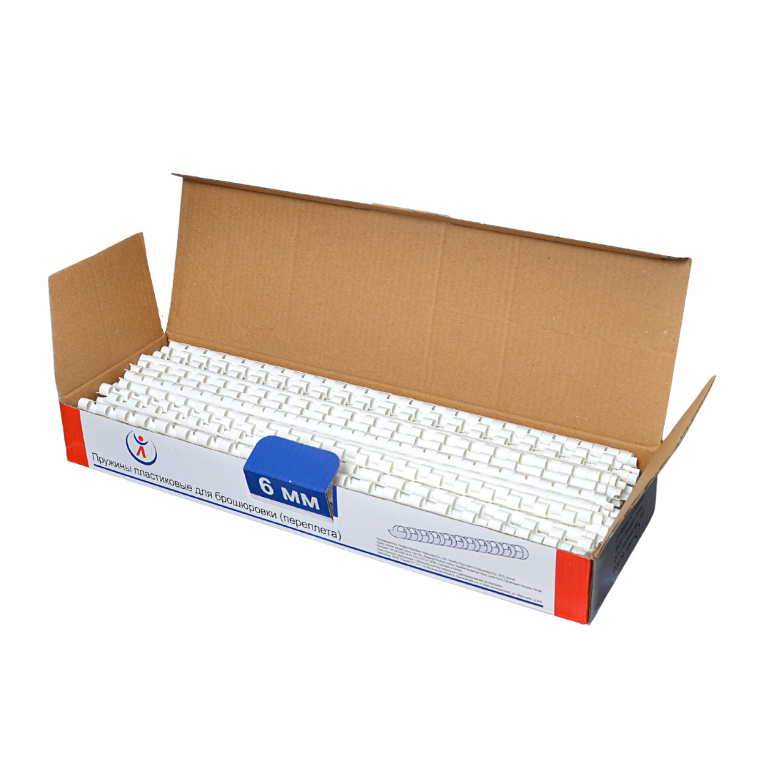 Пружины пластиковые для переплета белые, 6 мм, комплект 100 штук (для сшивания до 25 листов)