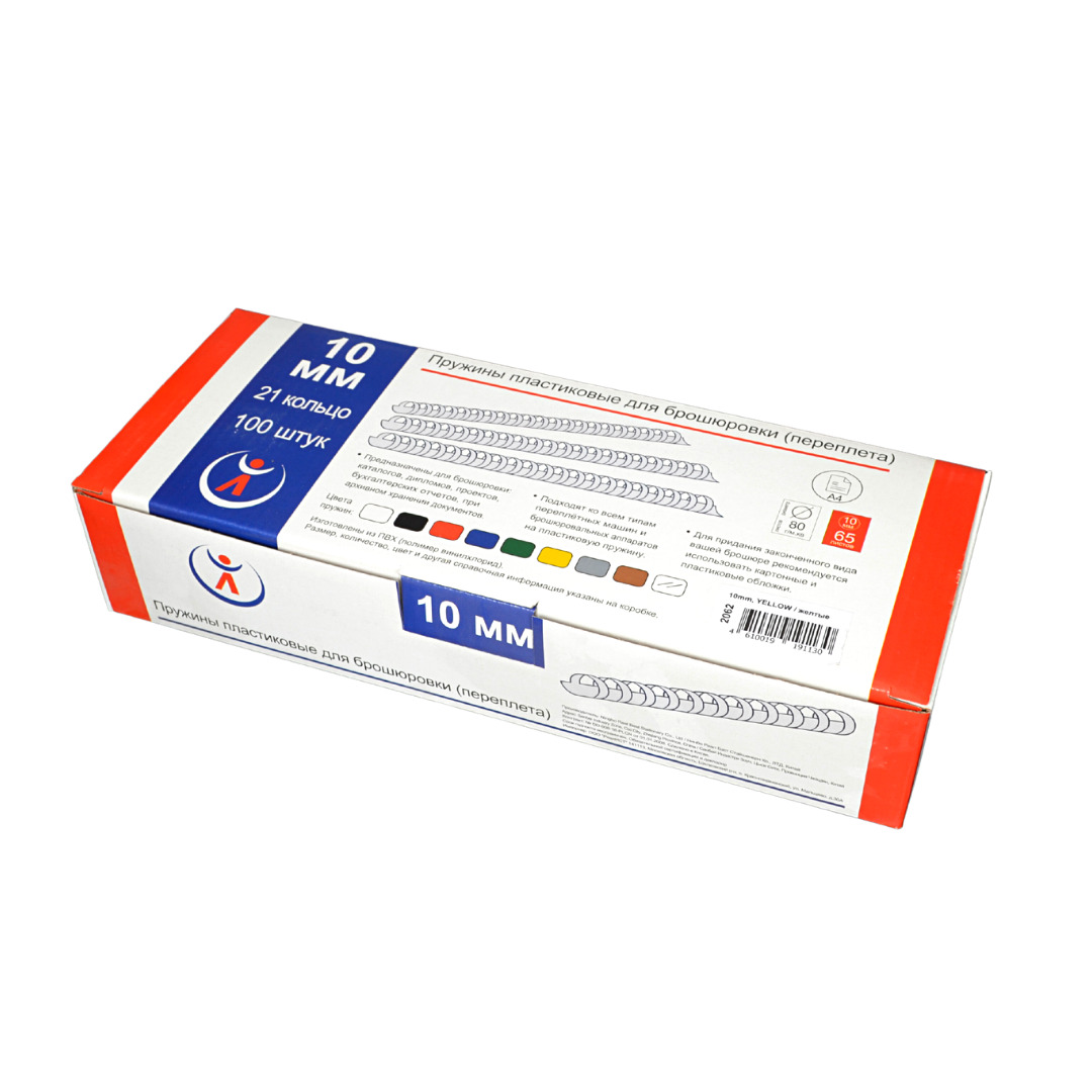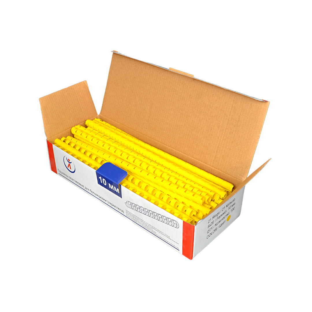 Пружины пластиковые для переплета желтые, 10 мм, комплект 100 штук (для сшивания до 65 листов)