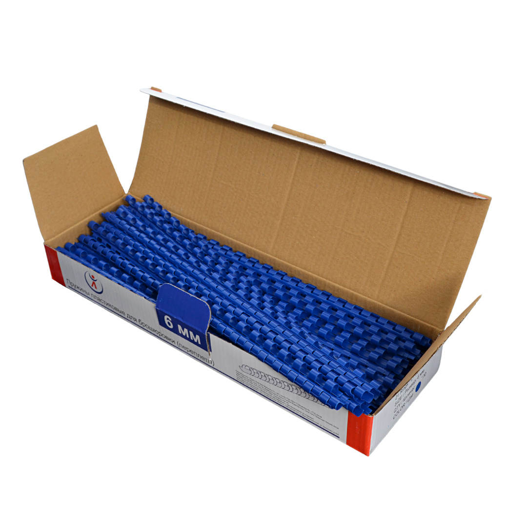 Пружины пластиковые для переплета синие, 6 мм, комплект 100 штук (для сшивания до 25 листов)