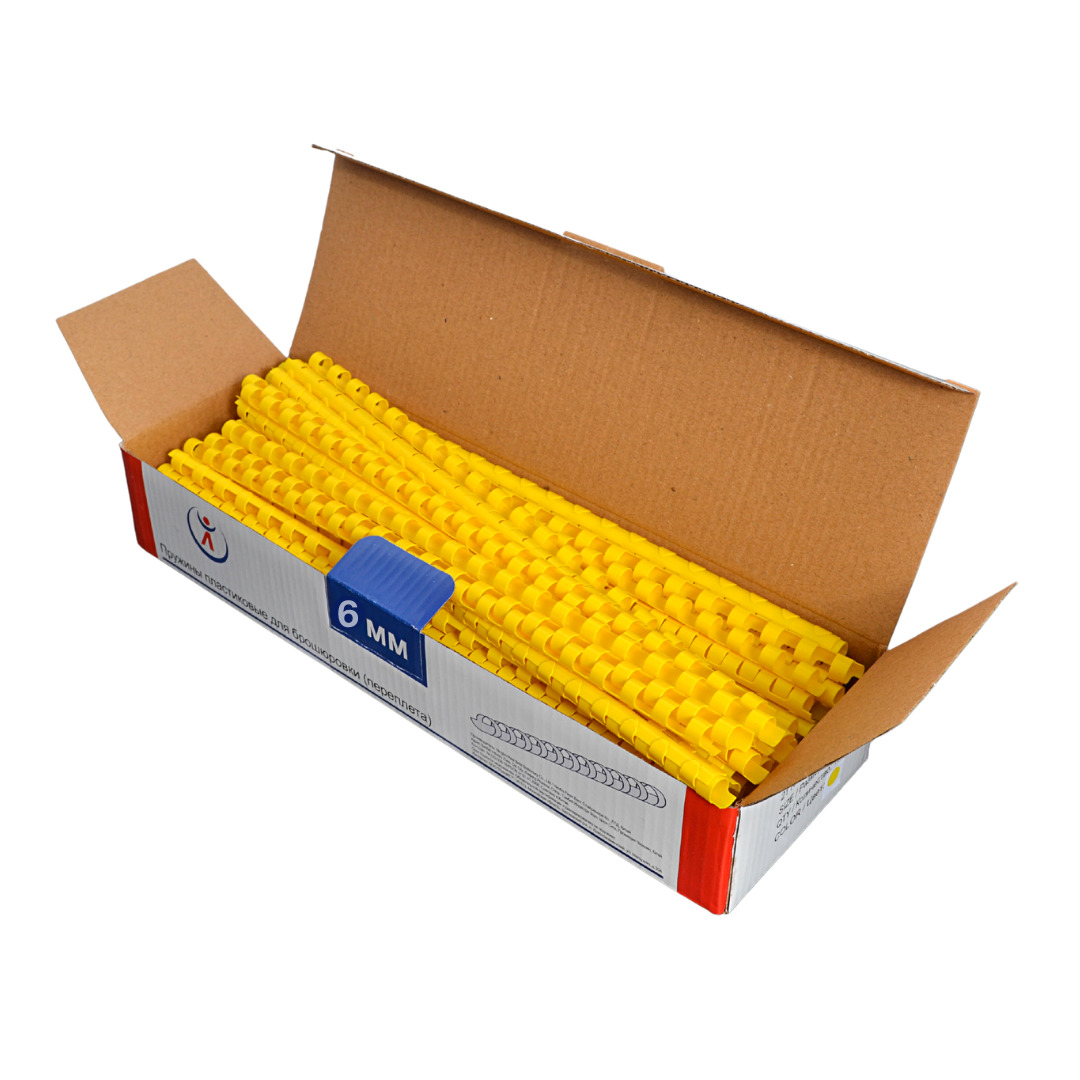 Пружины пластиковые для переплета желтые, 6 мм, комплект 100 штук (для сшивания до 25 листов)