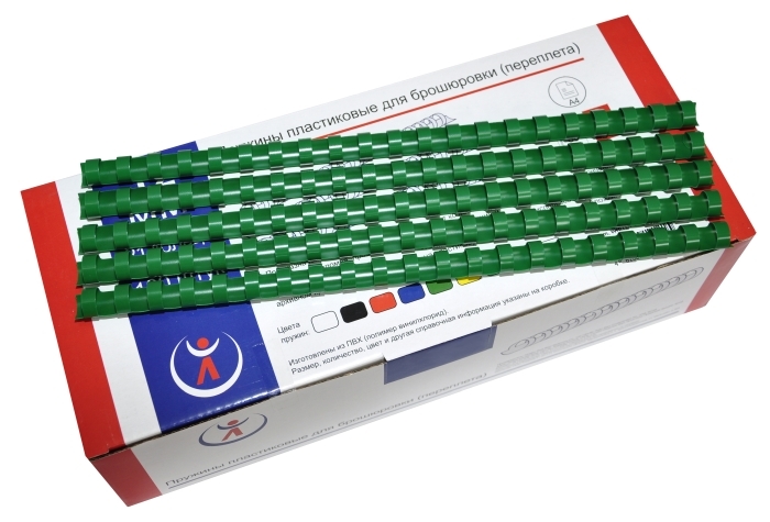 Пружина пластиковая для переплета, 6 мм, для сшивания 10-25 листов, зеленая, 100 шт, РеалИСТ