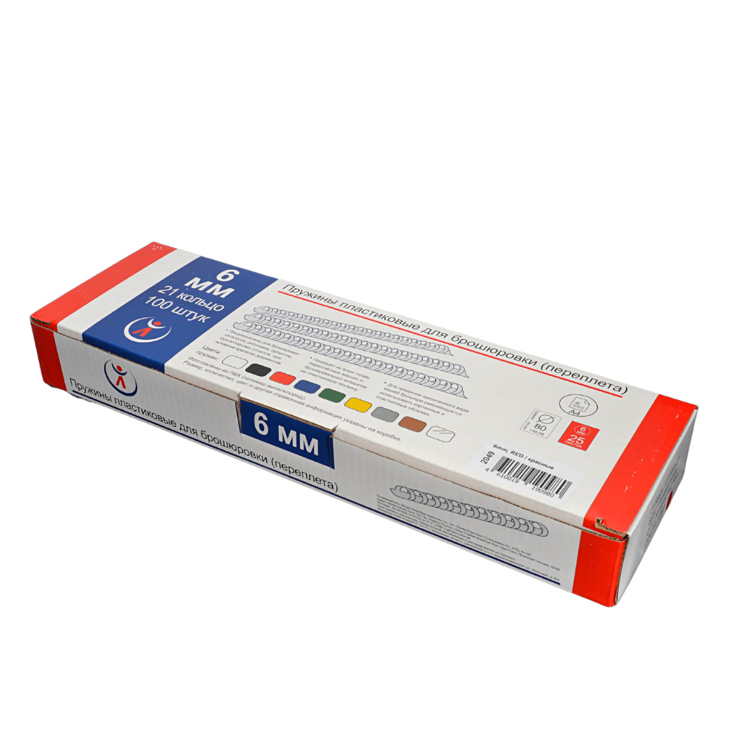 Пружины пластиковые для переплета красные, 6 мм, комплект 100 штук (для сшивания до 25 листов)