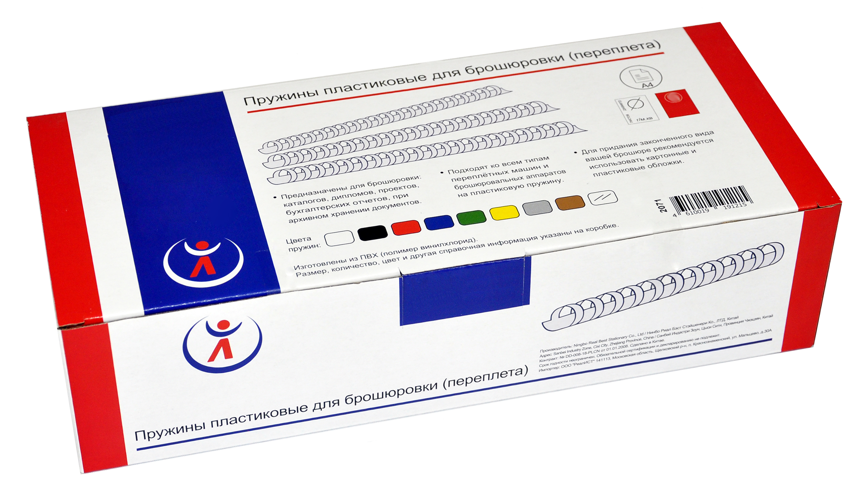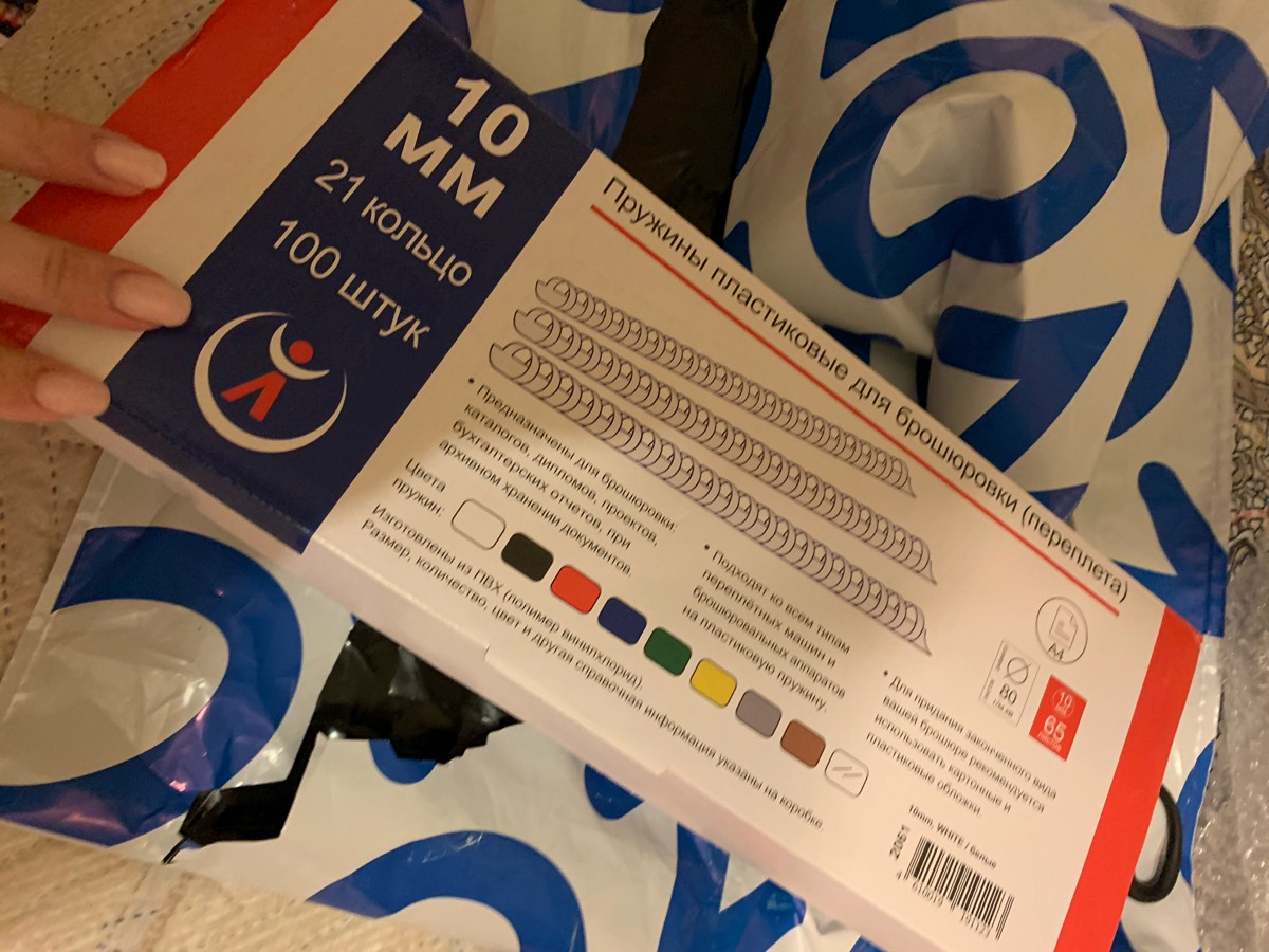 Пружины пластиковые для переплета, комплект 100 шт., 10 мм, для сшивания 41-55 листов, белые.