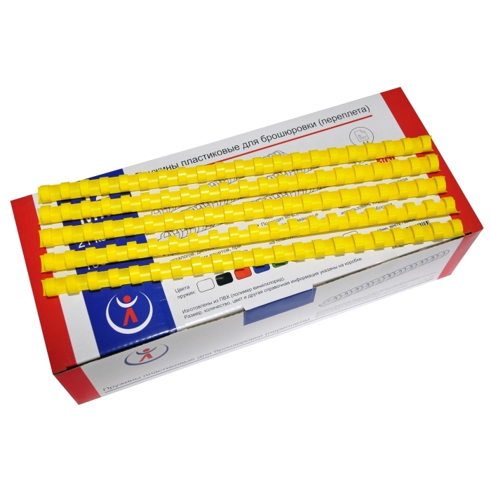 Пружина пластиковая для переплета, 8 мм, для сшивания 20-45 листов, желтая, 100 шт, РеалИСТ