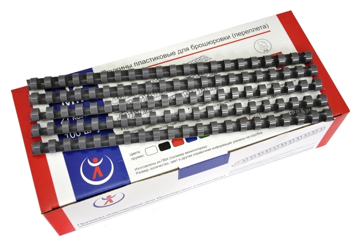 Пружина пластиковая для переплета, 10 мм, для сшивания 40-65 листов, серая, 100 шт, РеалИСТ