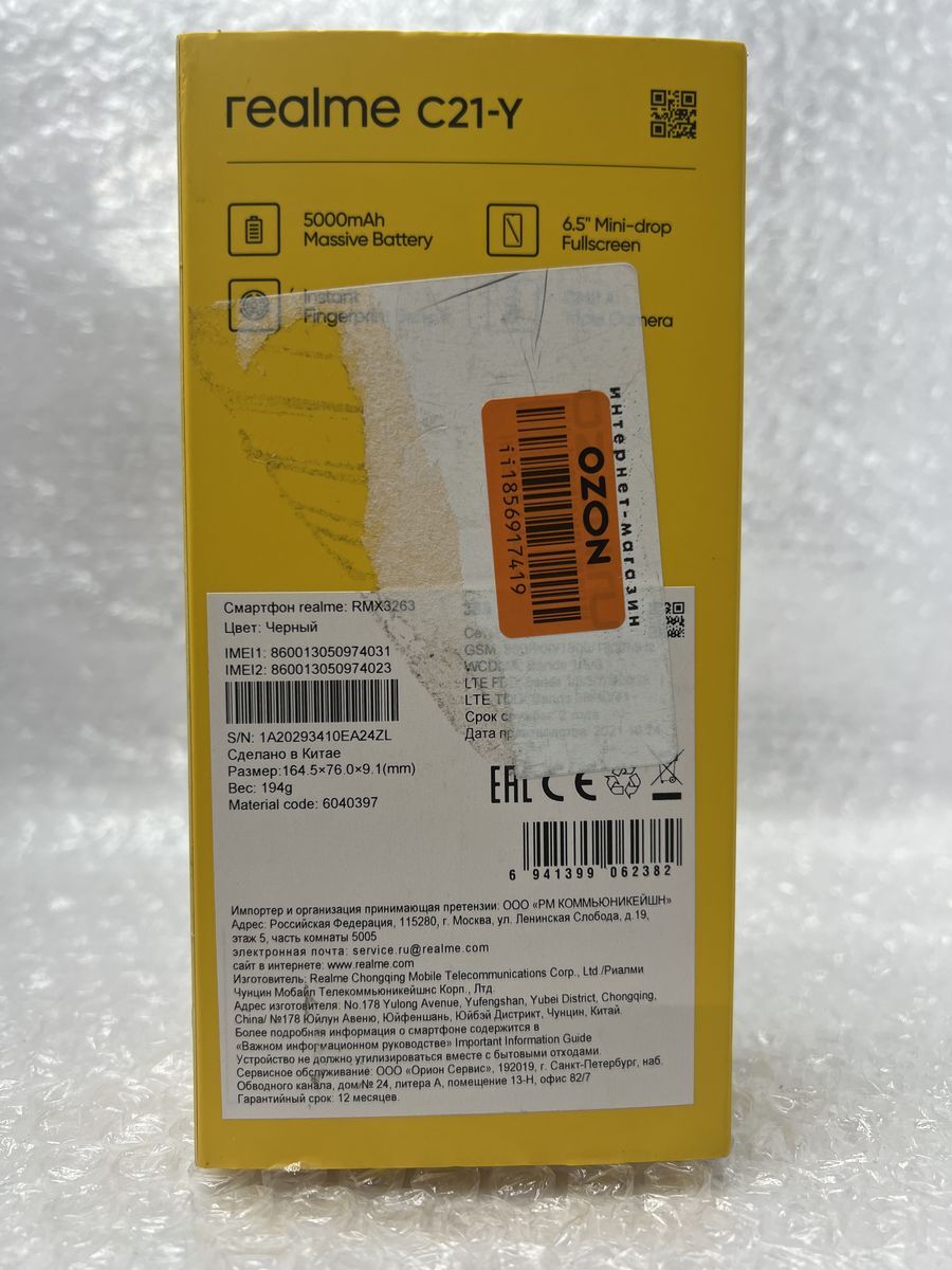 Смартфон realme C21Y 3/32GB, черный. Уцененный товар
