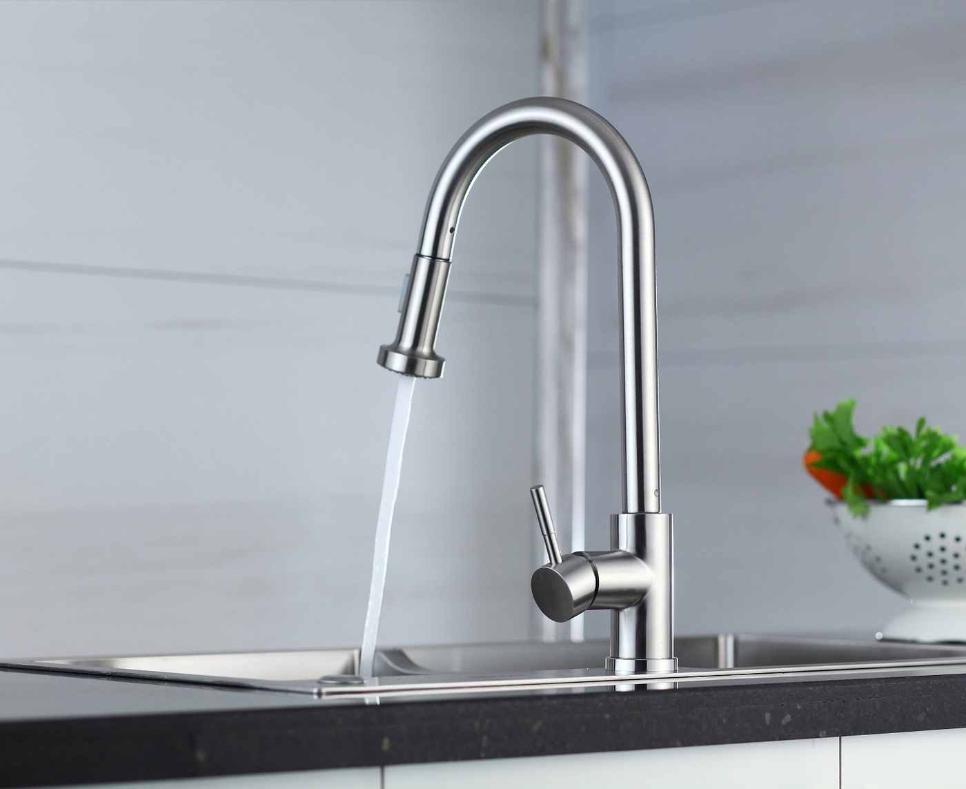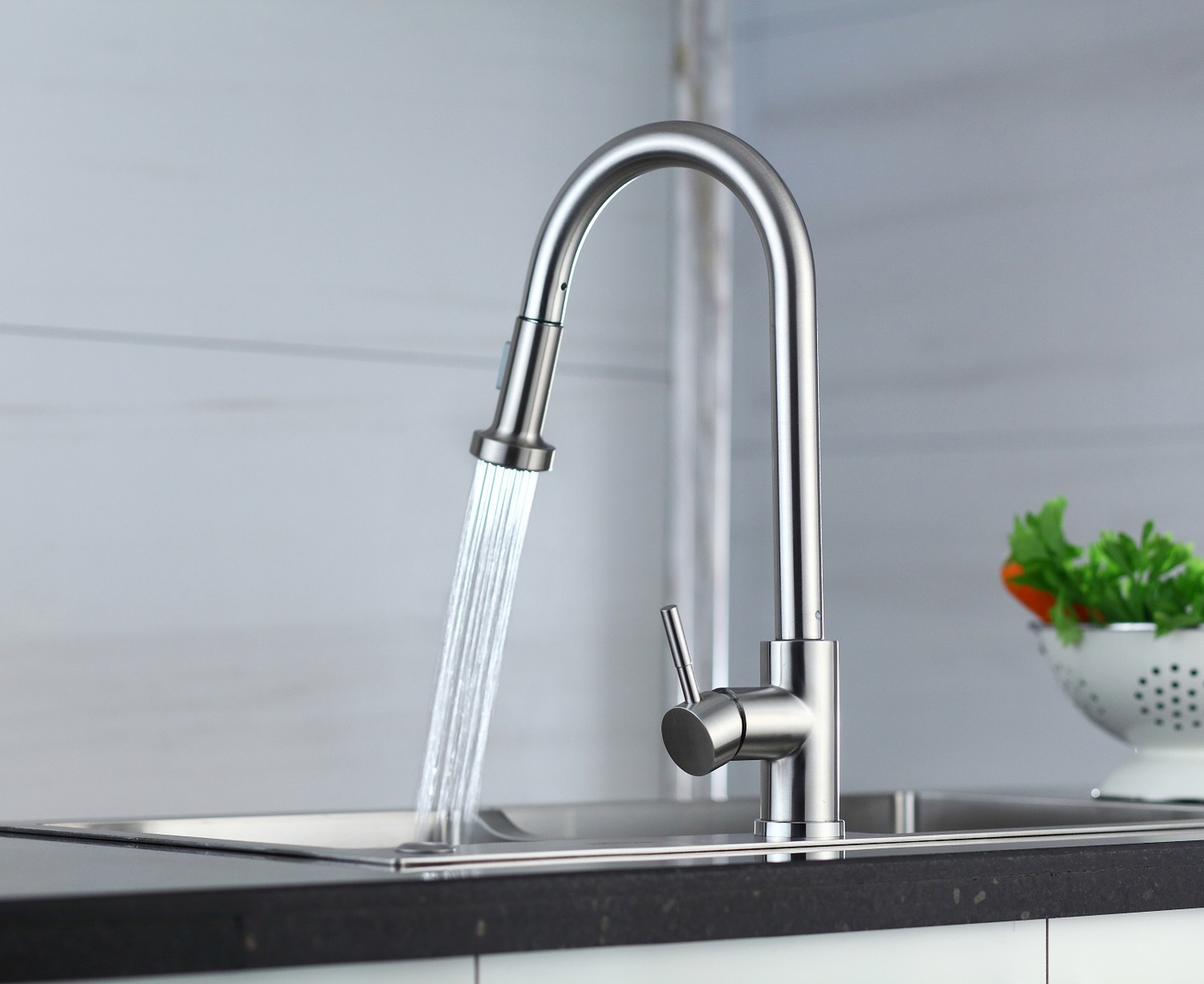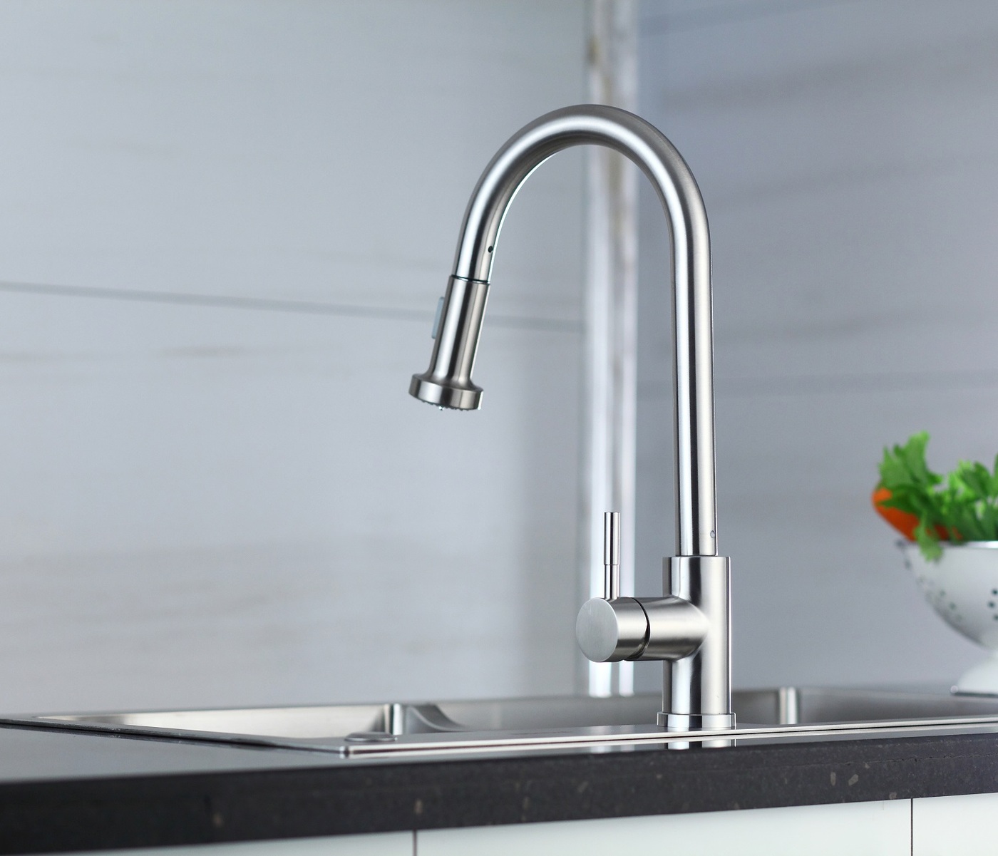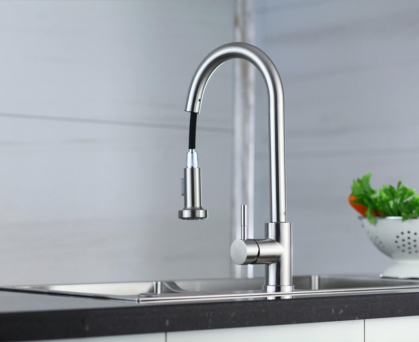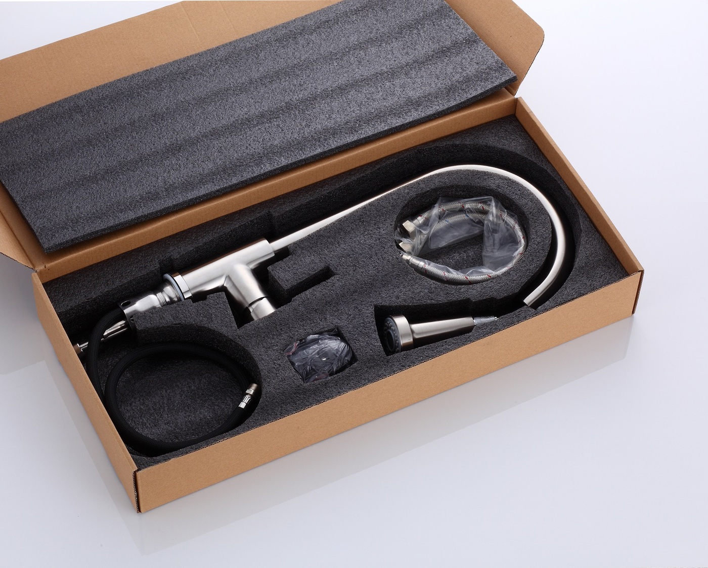 Смеситель для кухни с выдвижной лейкой и двумя режимами: душ/струя титан REEF MY1959-5