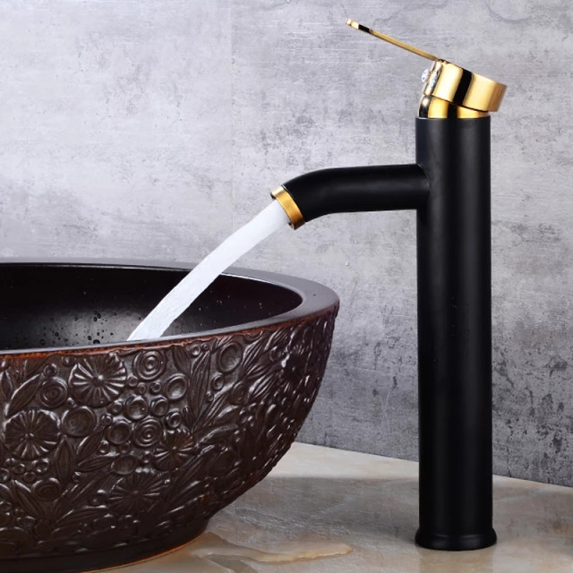 Смеситель для раковины высокий черный/золото REEF RF7088T