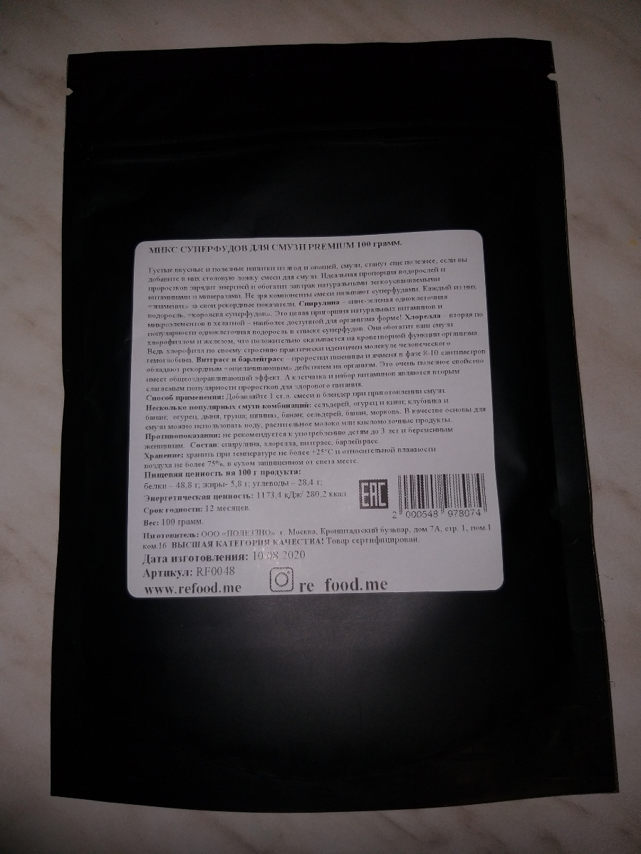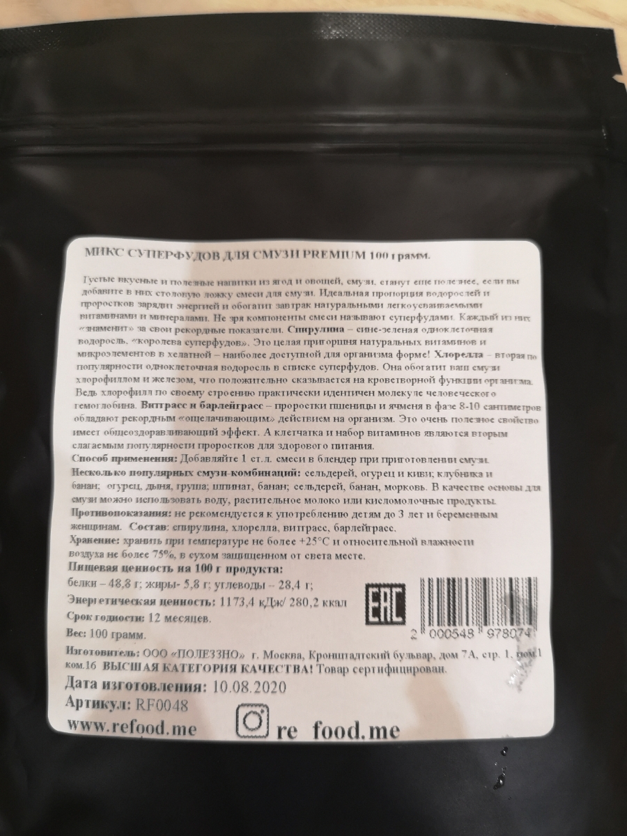 МИКС СУПЕРФУДОВ ДЛЯ СМУЗИ 100 грамм.