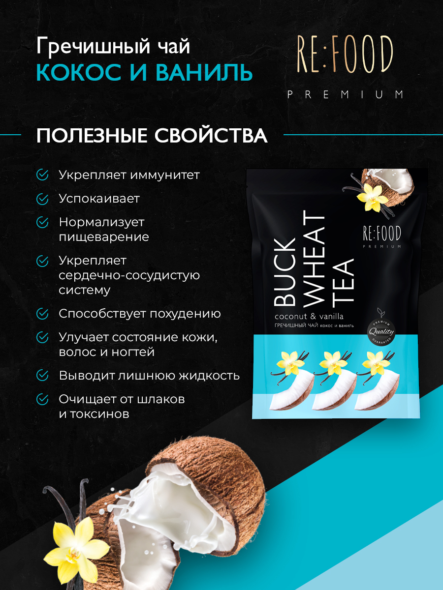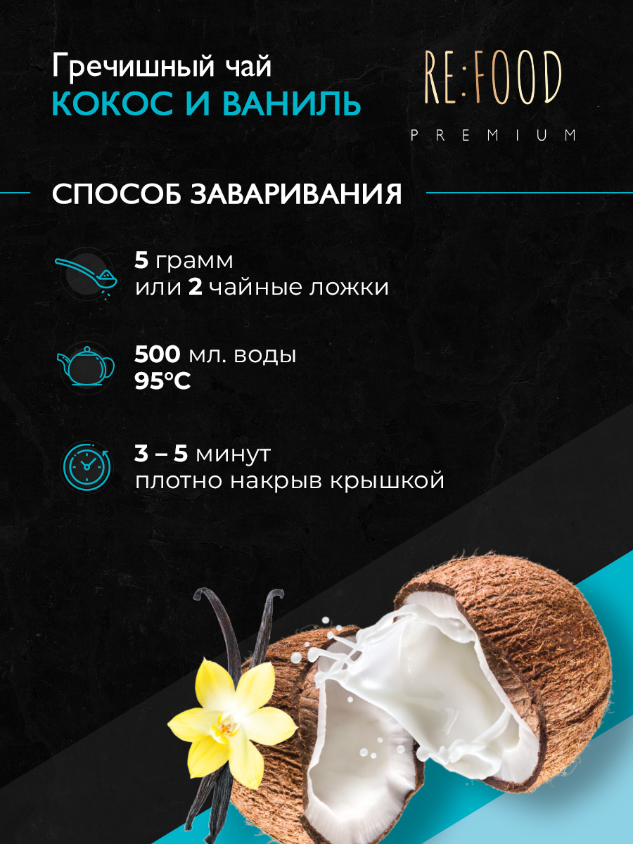 Чай Гречишный Кокос и Ваниль PREMIUM (Куцяо, Суперфуд, Без Кофеина, Для похудения) 100 грамм