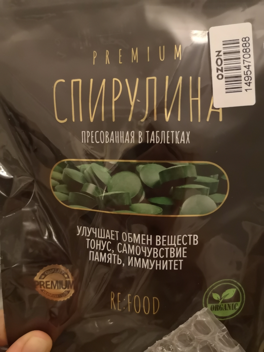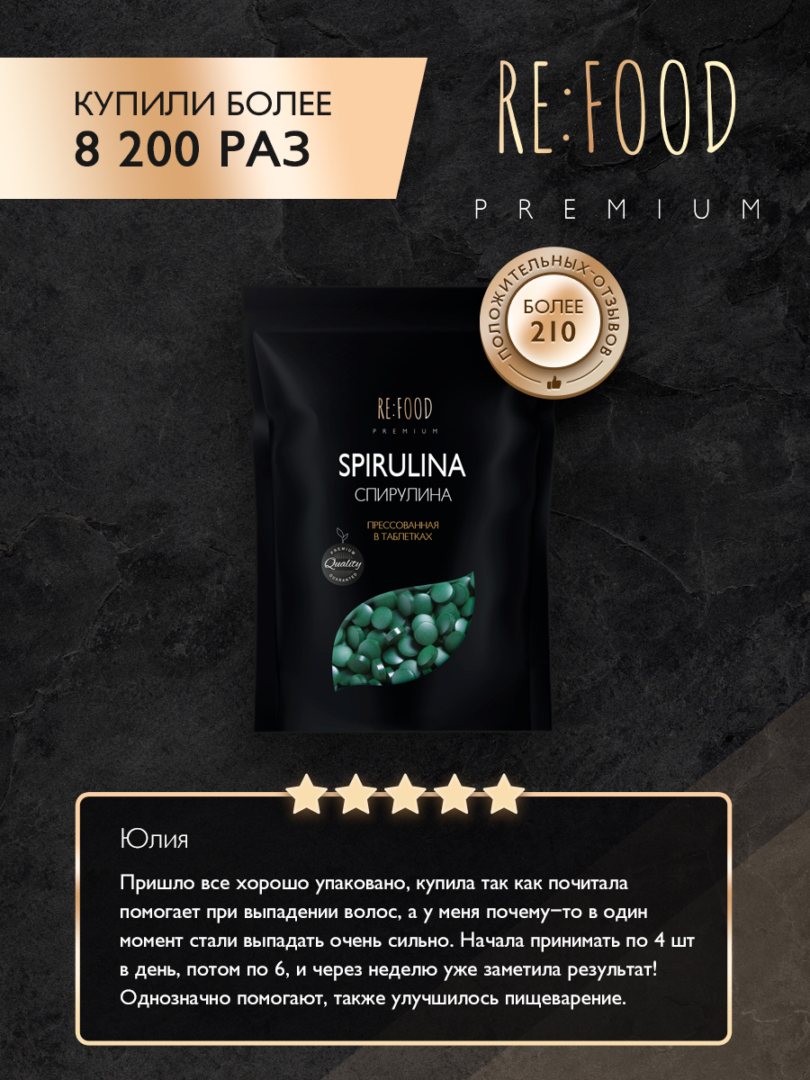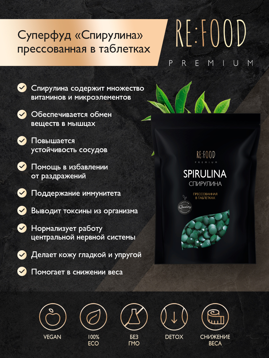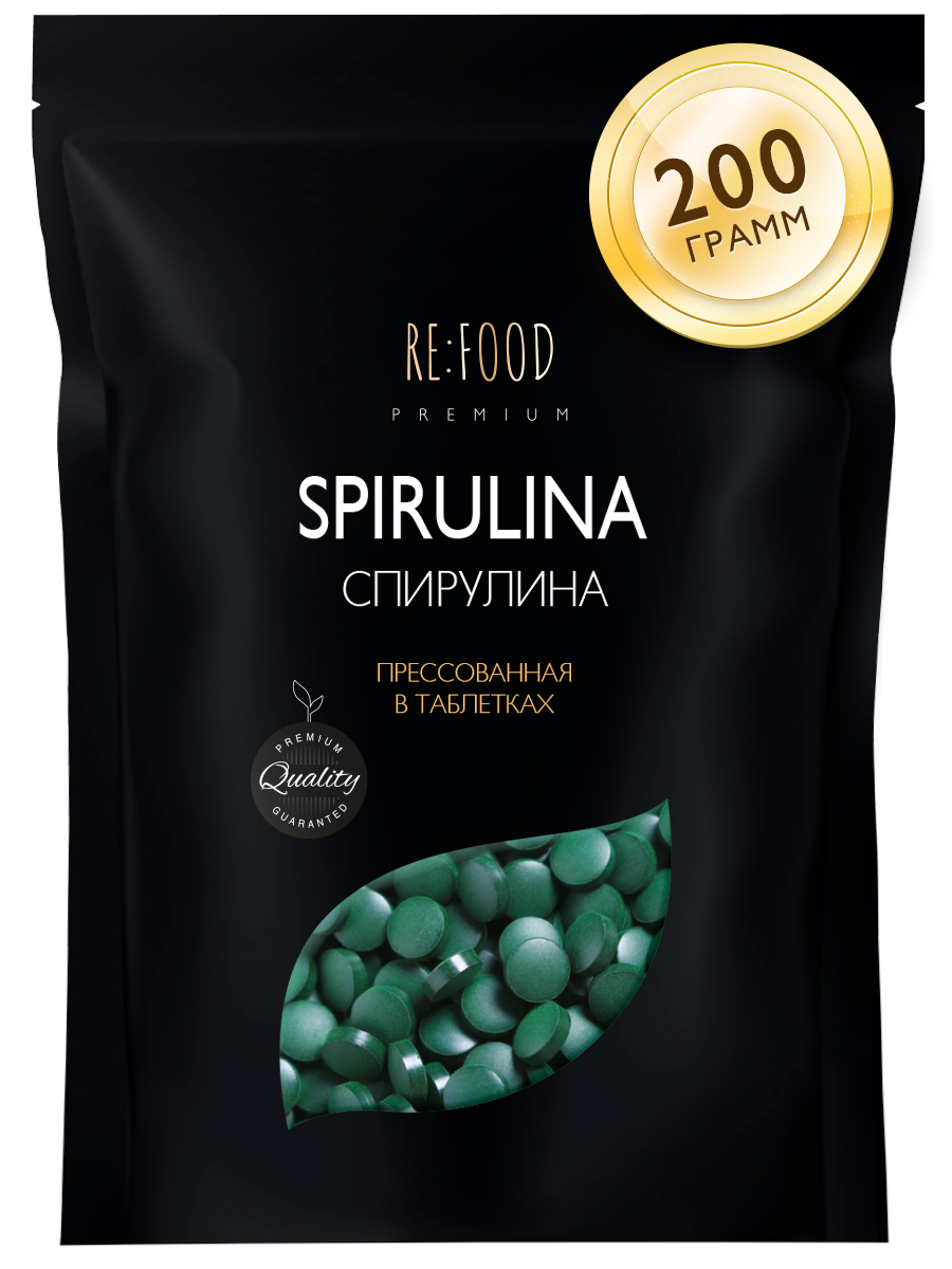 RE:FOOD Спирулина 200 грамм PREMIUM (Суперфуд ''Spirulina'' прессованная в таблетках),
