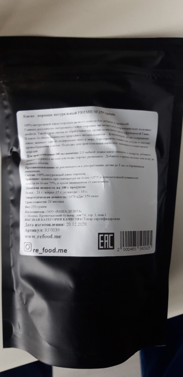 Какао - порошок натуральный алкализованный PREMIUM 250 грамм
