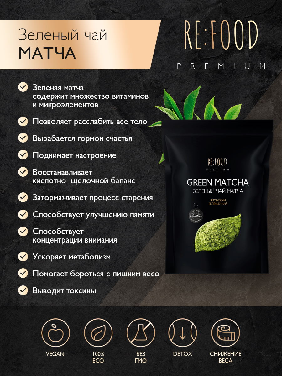 Зеленый Матча чай PREMIUM RE:FOOD 100 грамм