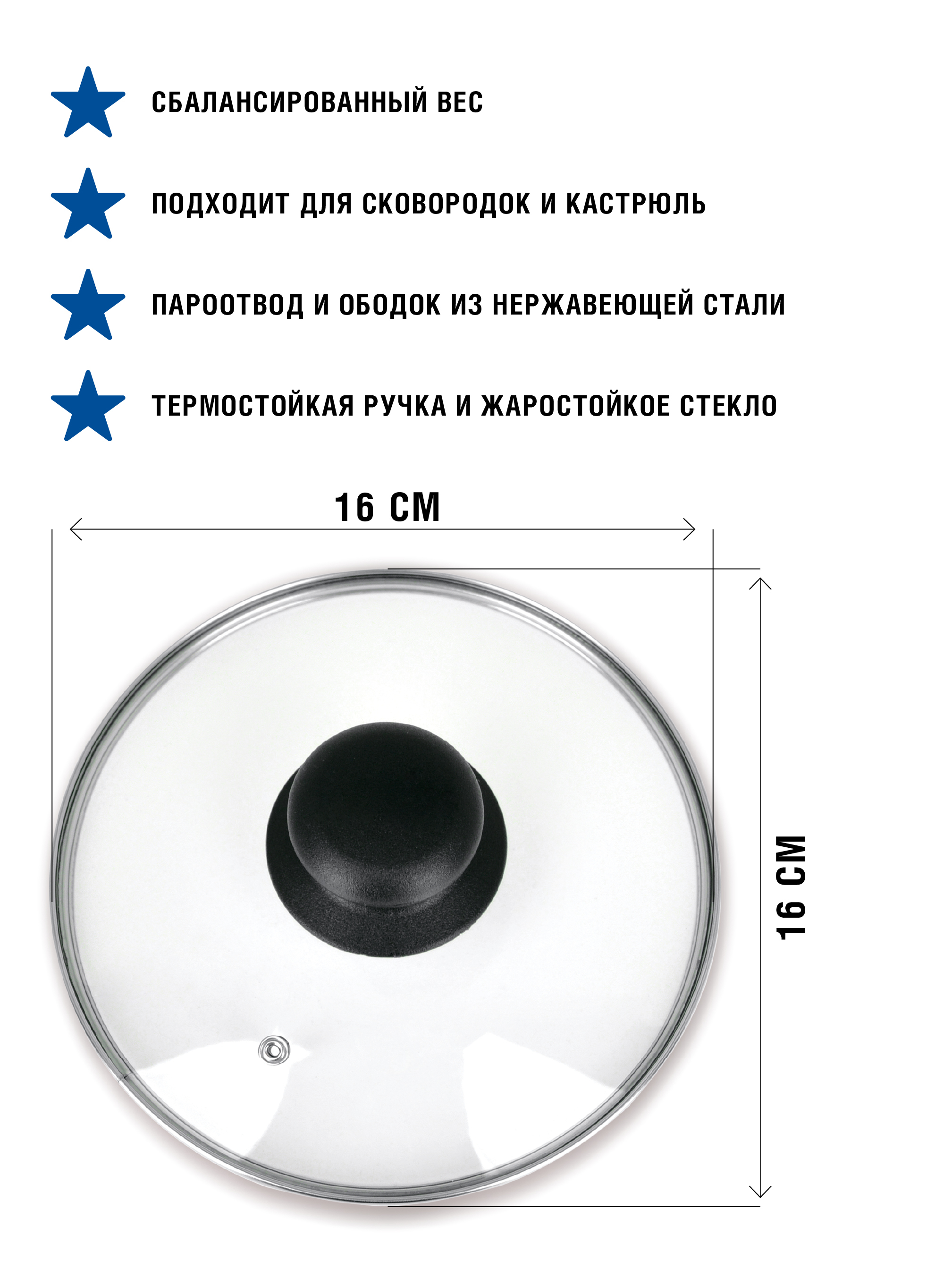 Крышка Regent Inox, 1 шт, диаметр: 16 см