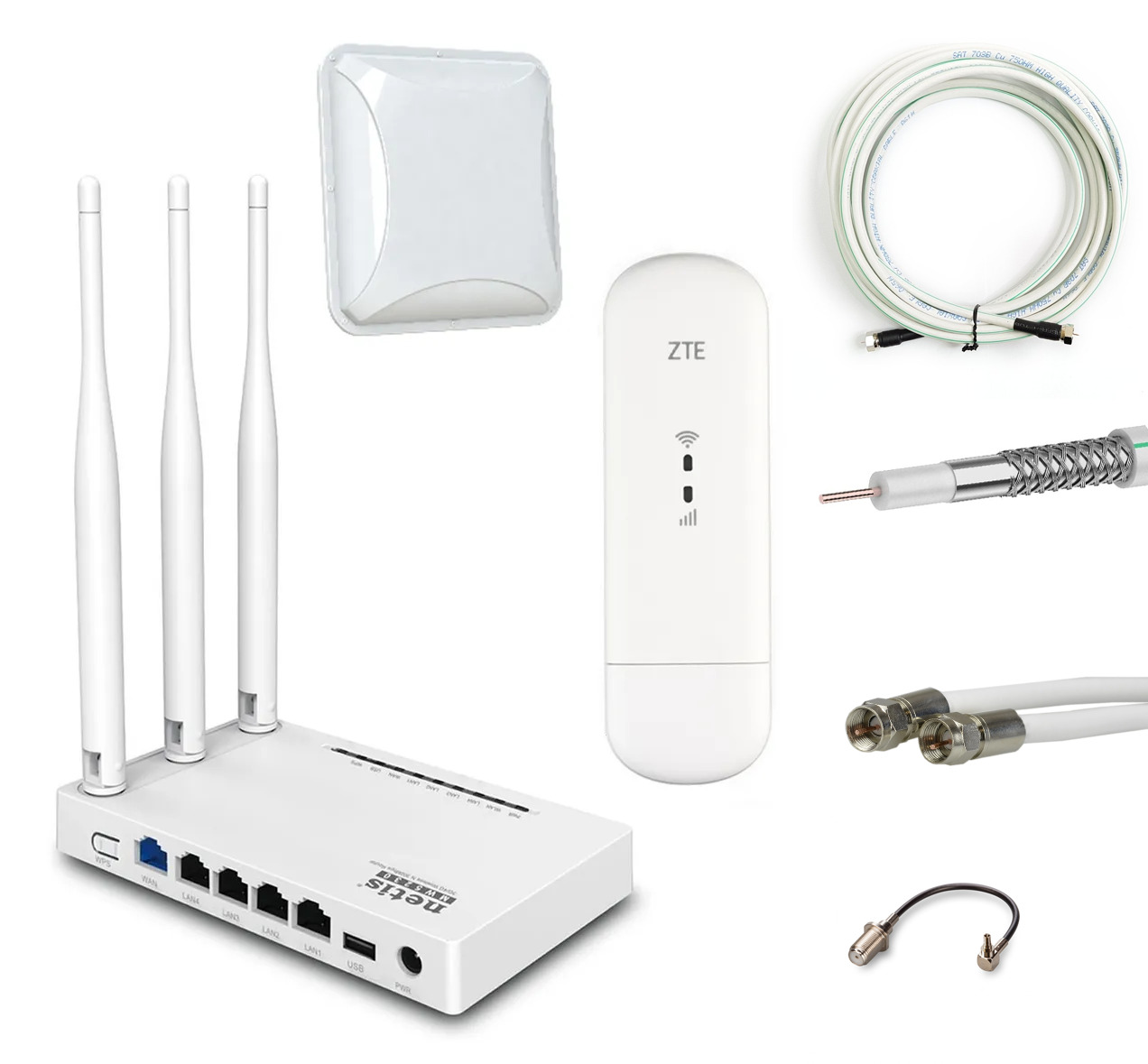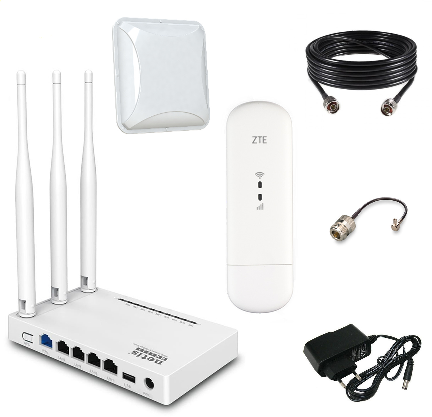 Комплект для усиления мобильного интернета 3G/4G (LTE) NET-MOL005/ модем с Wi-Fi роутером и антенной