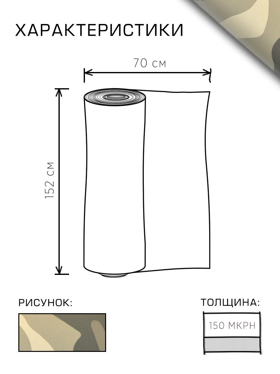Плёнка самоклеящаяся матовая - камуфляж, для декорирования интерьера: 152х200 см, цвет: песочный
