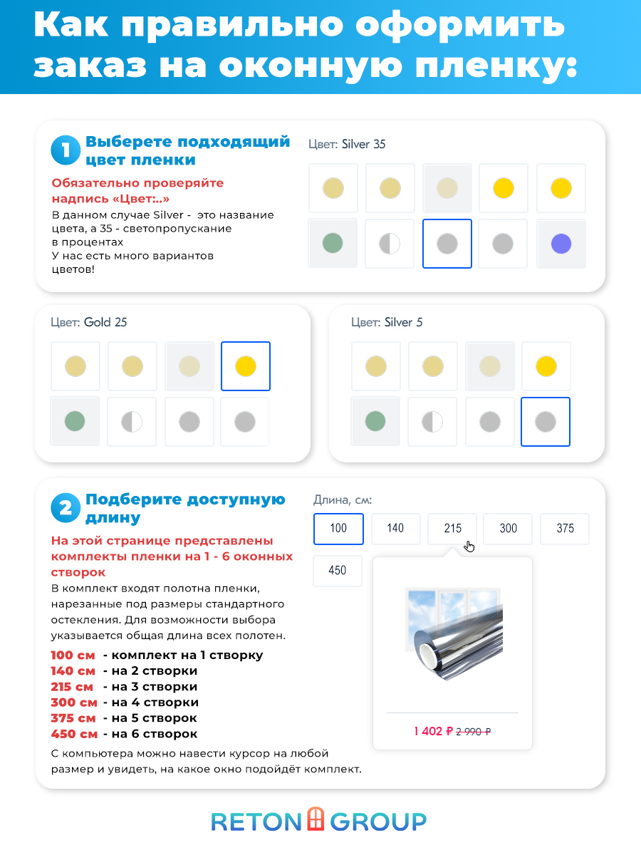 Пленка солнцезащитная для окон Reton Group 152х90см