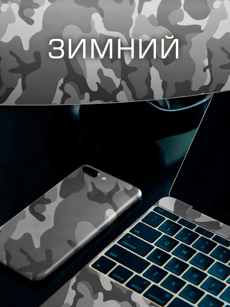 Плёнка самоклеящаяся матовая - камуфляж, для декорирования интерьера: 152х60 см, зимний